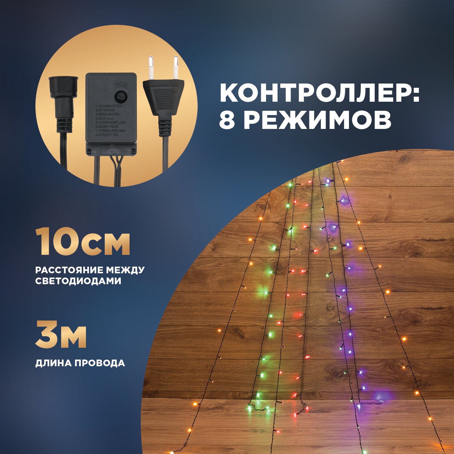 Елочная гирлянда теплый белый свет Neon-Night с кольцом 7 нитей по 1,5 м, контроллер в комплекте