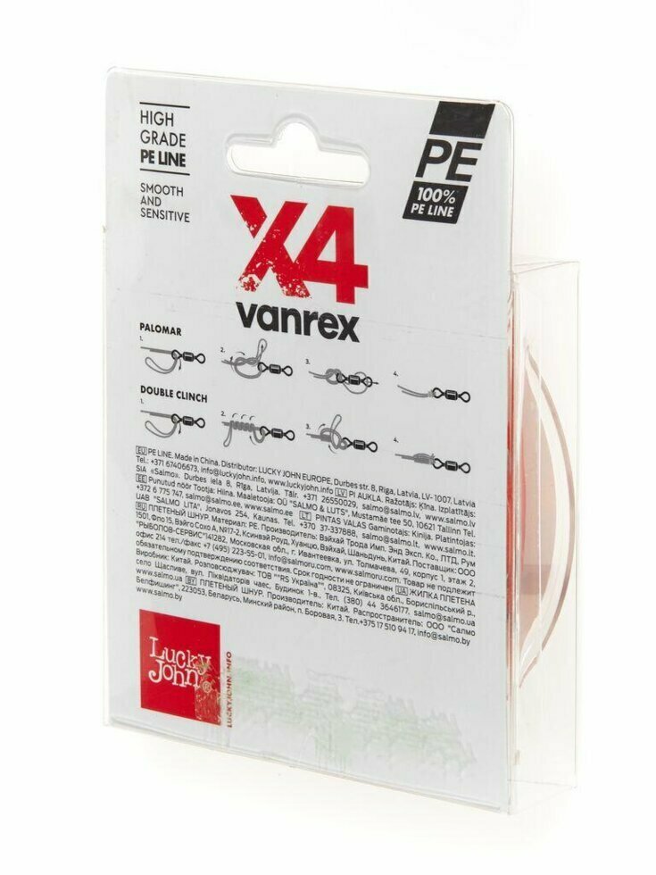 Леска VANREX Х4 плетёная 125m, 0.10mm, 3.40kg "Lucky John"