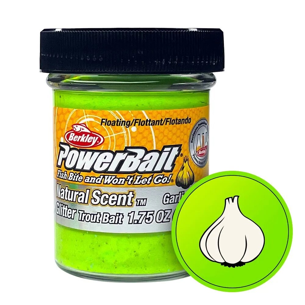 Форелевая паста BERKLEY PowerBait Natural SCENT Glitter 50 гр (Чеснок, цв. Шартрез) BGTGC2