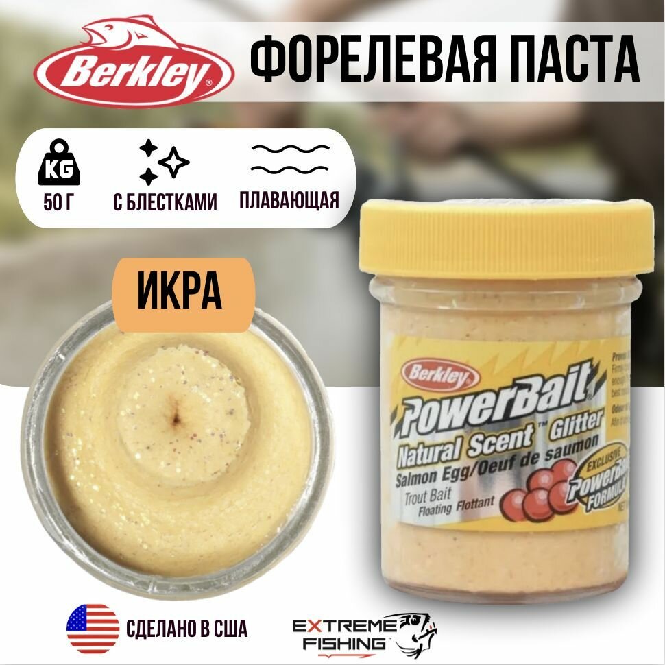Паста форелевая Berkley PowerBait NATURAL SCENT Glitter TROUT BAIT 50gr SALMON EGG - RAINBOW