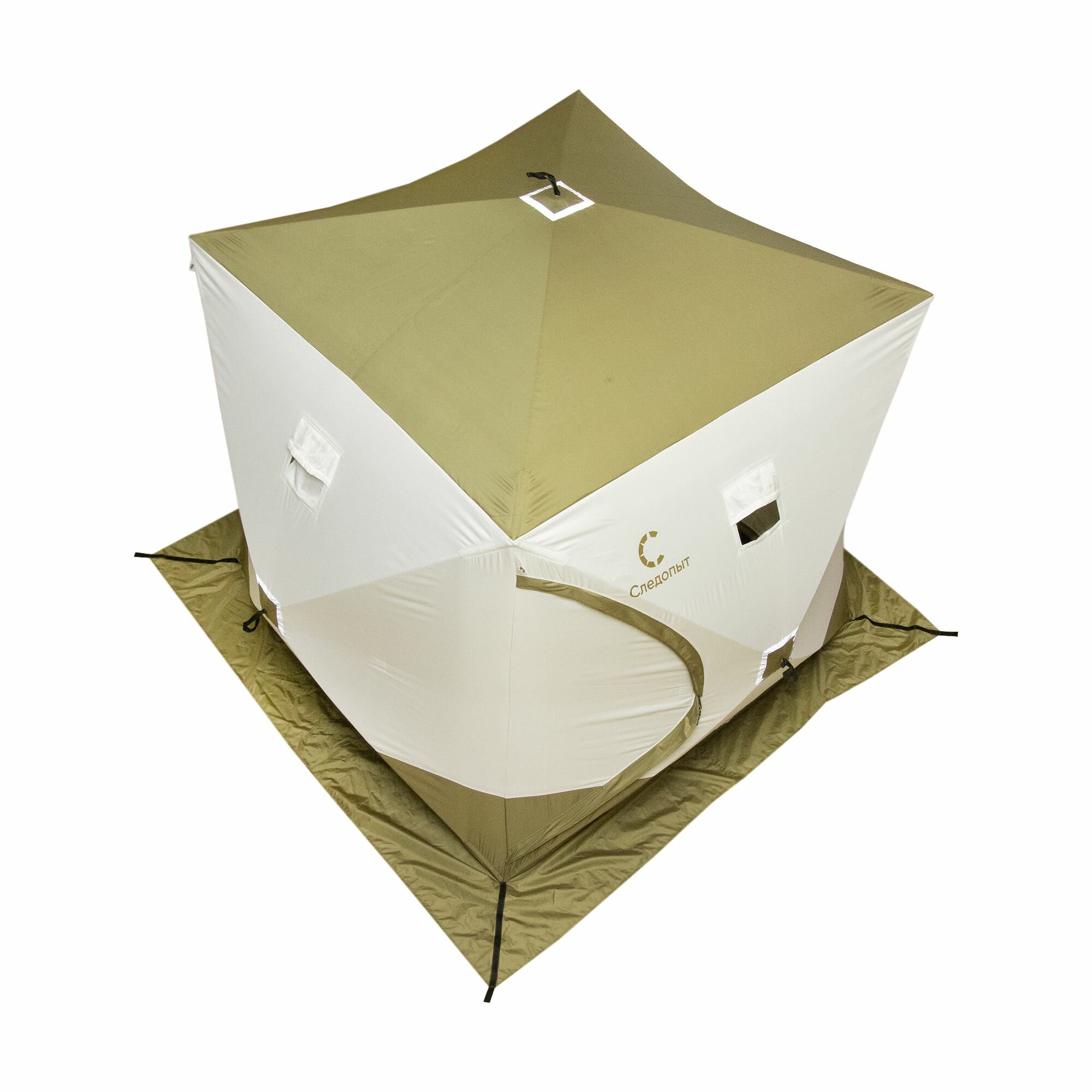 Палатка зимняя куб следопыт "Premium" 1,8х1,8 м, 3-х местная, 3 слоя, цв. белый/олива