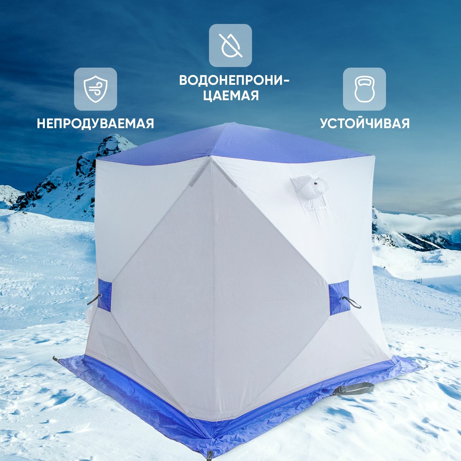 Палатка зимняя куб "следопыт", 2-х местная, 3 слоя, цвет бело-синий