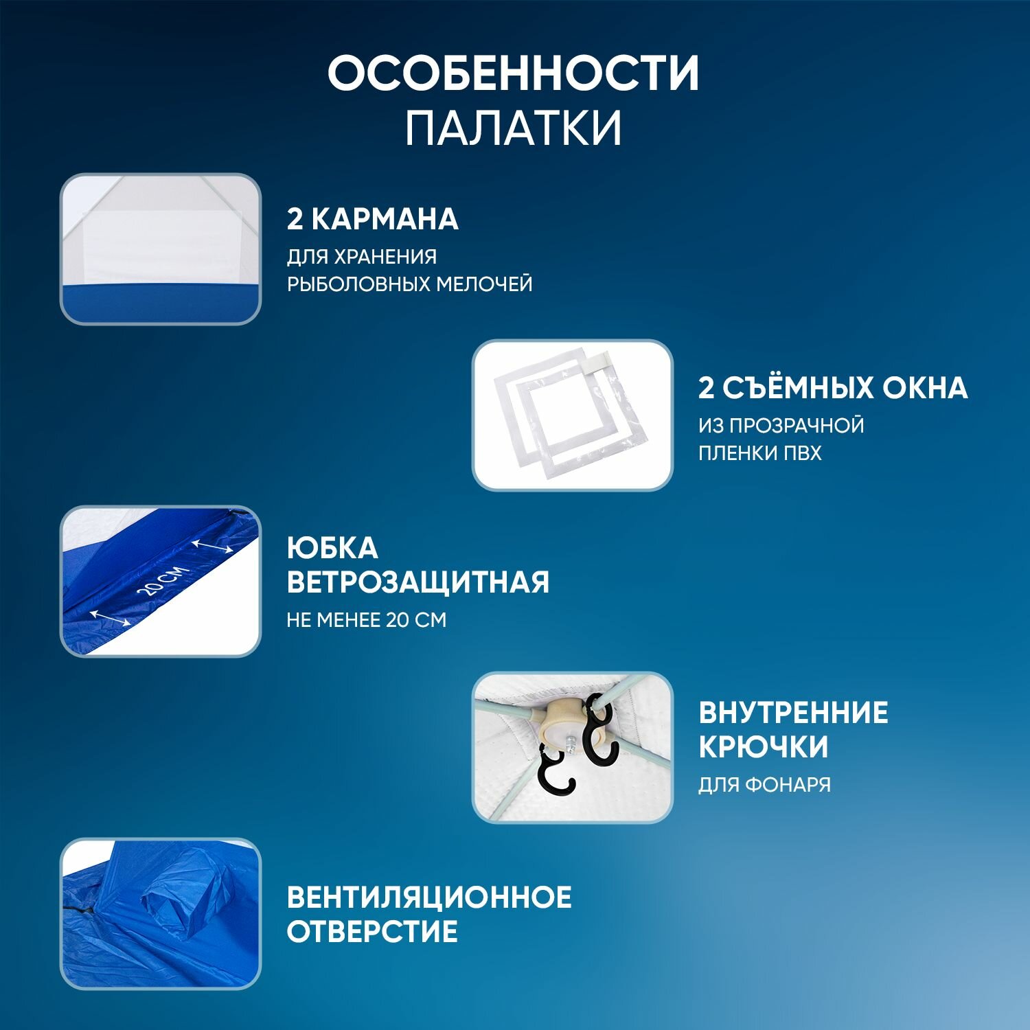 Палатка зимняя куб следопыт Эконом, 2-х местная, 3 слоя, цв. бело-синий
