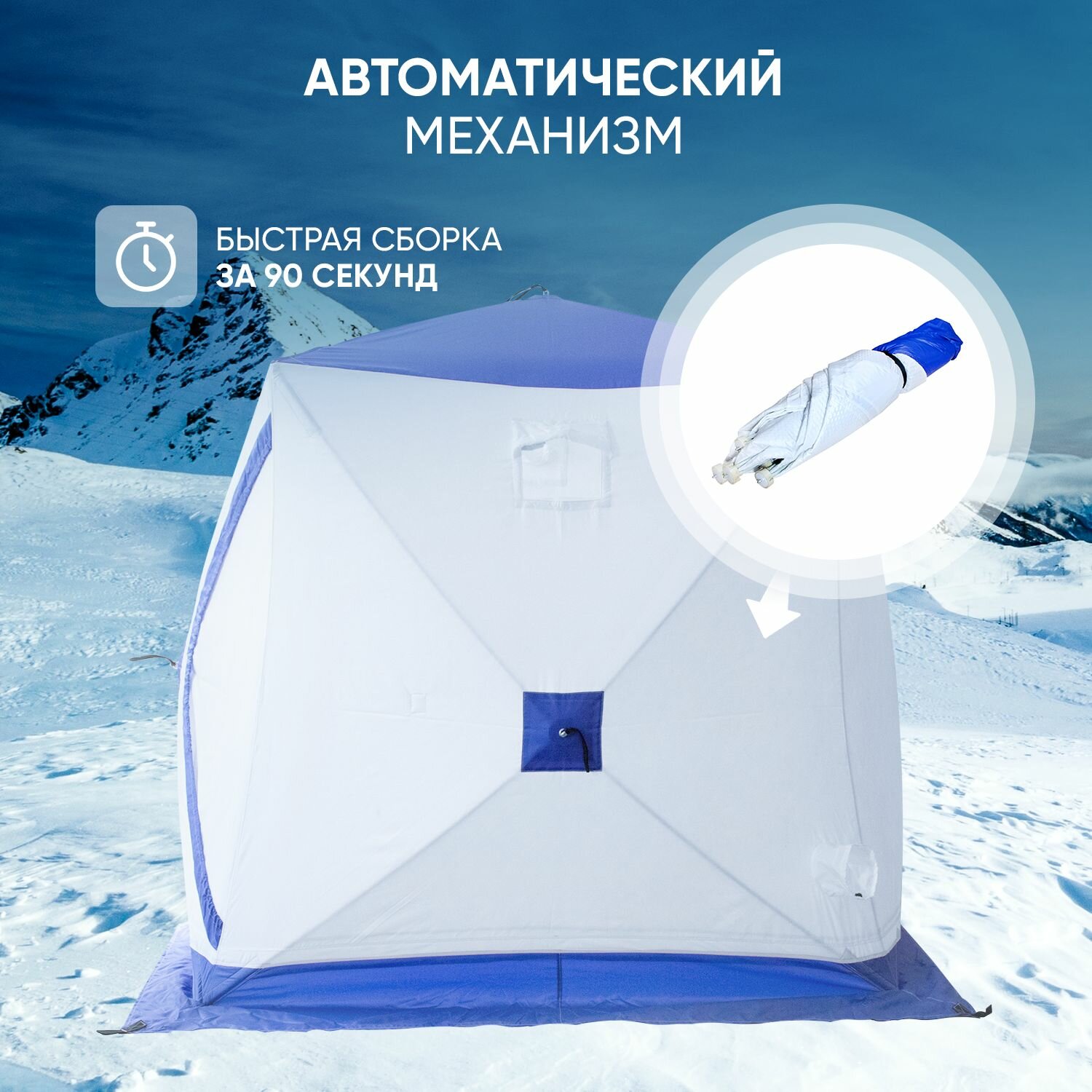 Палатка зимняя куб следопыт, 2-х местная, 3 слоя, цвет бело-синий