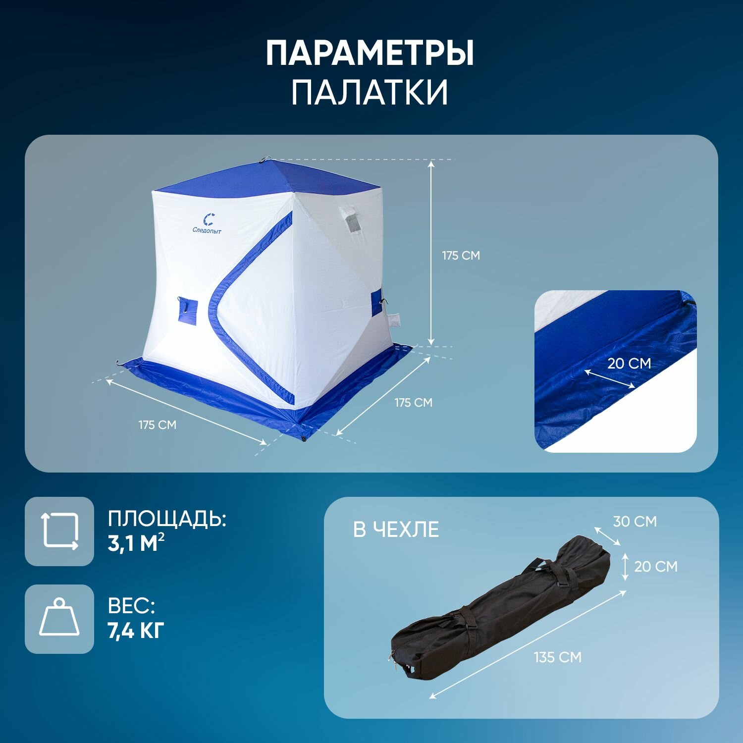 Палатка зимняя куб следопыт, 1,75х1,75, h-1,75м, S по полу 3,1 кв. м, 3 слоя, цв. синий/белый (PF-TW-07/2)