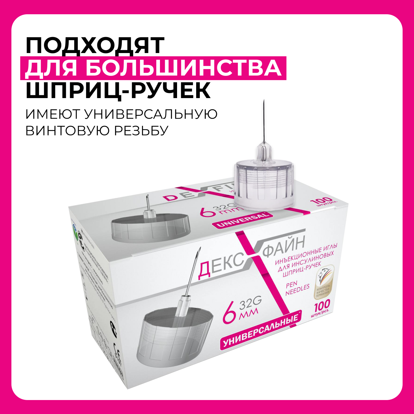 DEXFINE (дексфайн) иглы инсулиновые для шприц-ручек 32G х 6 мм, 100 штук