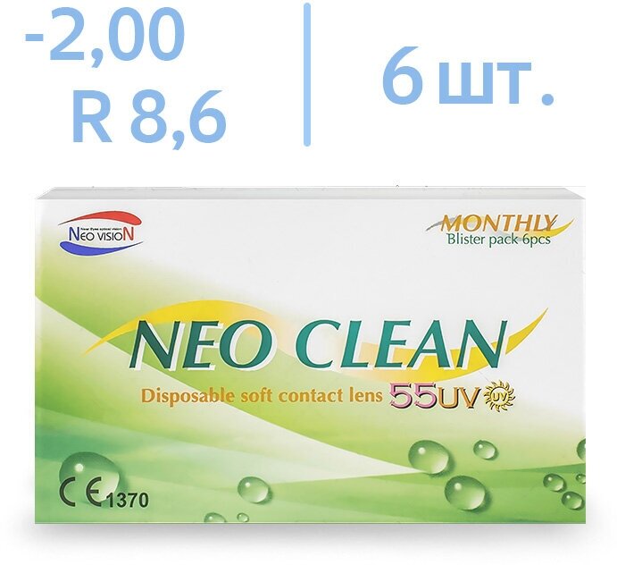 Купить Контактные линзы Neo Clean -2.0 1мес, UV-фильтр, 6шт./уп.+ контейнер в подарок