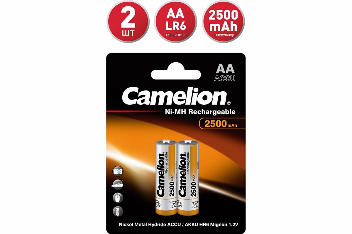 Купить Аккумуляторы Camelion AA, 2500 мАч, 1,2 В, блистер, 2 шт (6107)