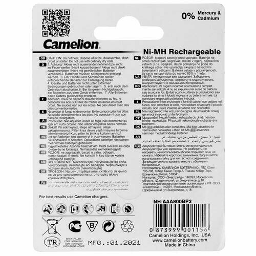 Ниже Вы можете прочитать отзывы на Аккумулятор Camelion AAA- 800mAh Ni-Mh BL-2 NH-AAA800BP2, 1.2В, ознакомится с подробными характеристиками, посмотреть интересные обзоры и фотографии на Аккумулятор Camelion AAA- 800mAh Ni-Mh BL-2 NH-AAA800BP2, 1.2В.