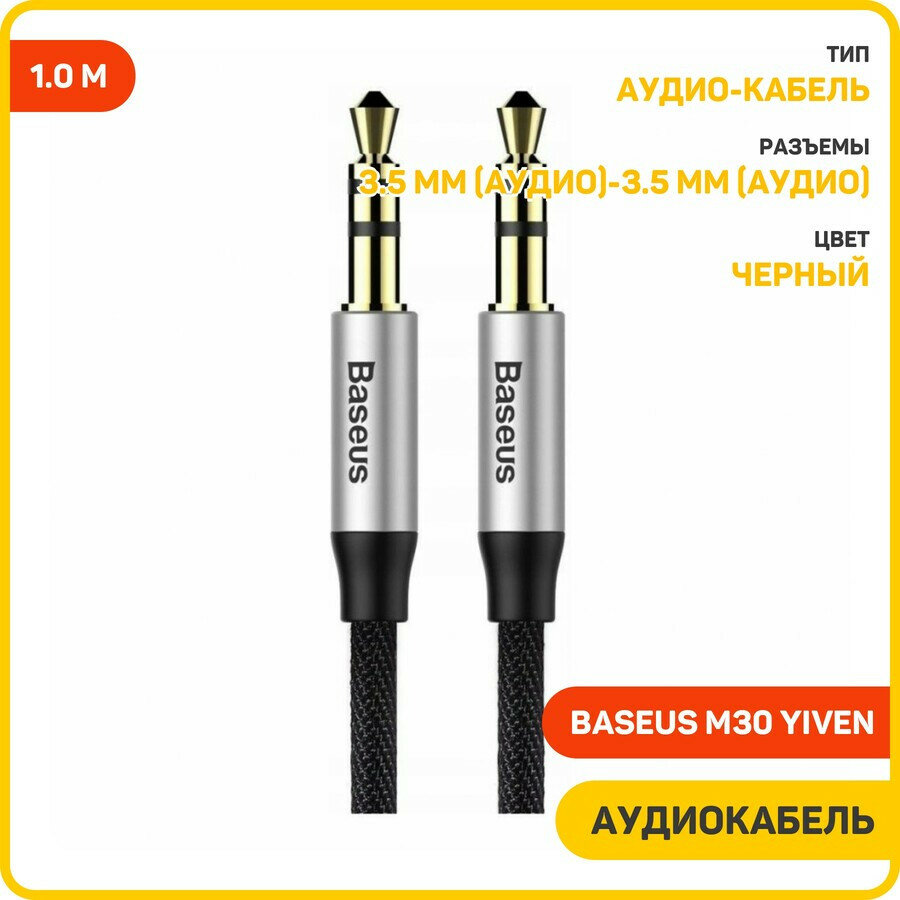 Купить Кабель Aux, Jack 3.5mm Baseus Yiven M30 (CAM30-BS1), черный, 1м