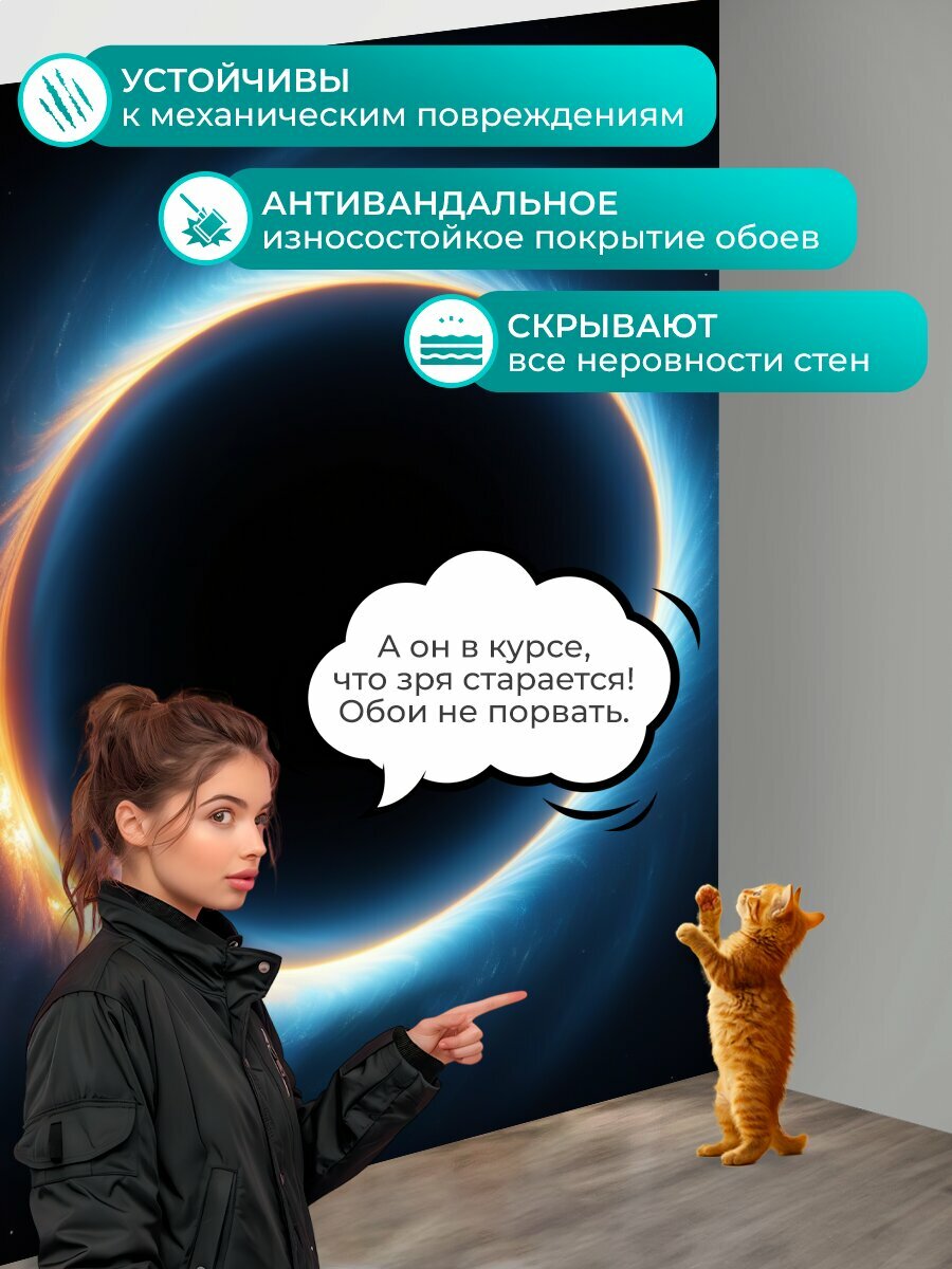 СохранитьФотообои моющиеся ударопрочные "Вихрь световой спирали вокруг черной дыры" 200x300 см. флизелиновые на стену интересное: