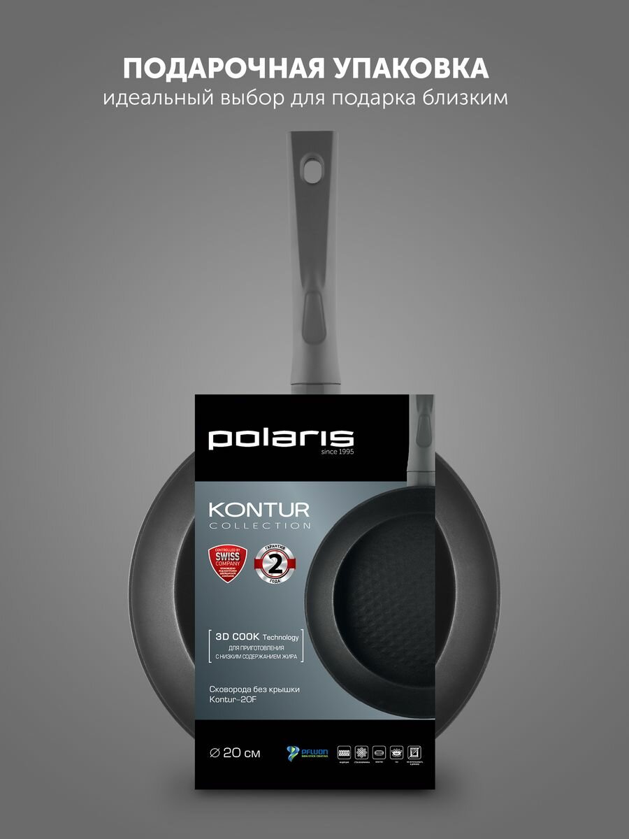 СохранитьСковорода Polaris Kontur-20F, 20 см, кованый алюминий, серый (015085) интересное: