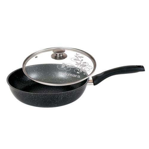 KUKMARA Сковорода, d=26 см с ручкой, стеклянная крышка, антипригарное покрытие, тёмный мрамор
