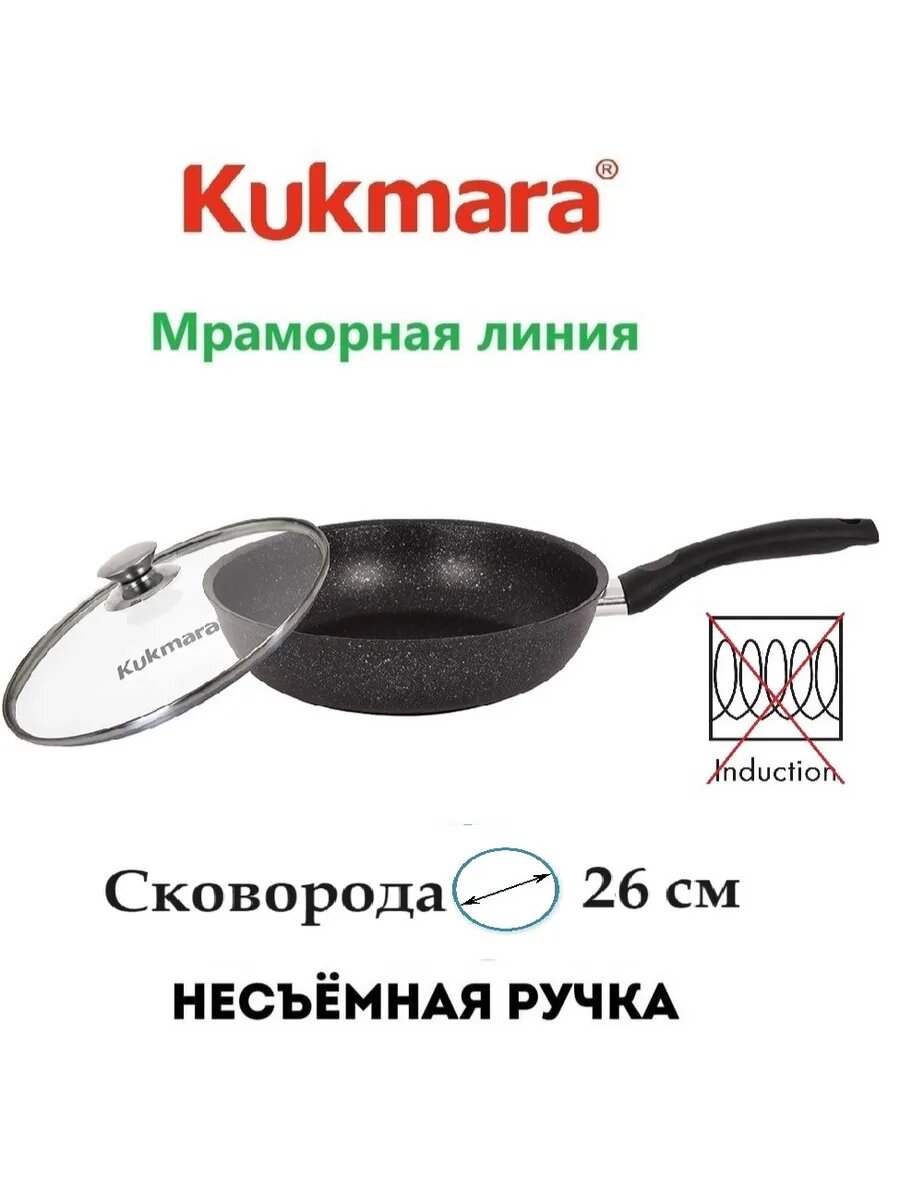 Сковорода 26см Kukmara Кукмара Kukmara Кукмара стеклянная крышка Антипригарное покрытие Кофейный мрамор смк26603а
