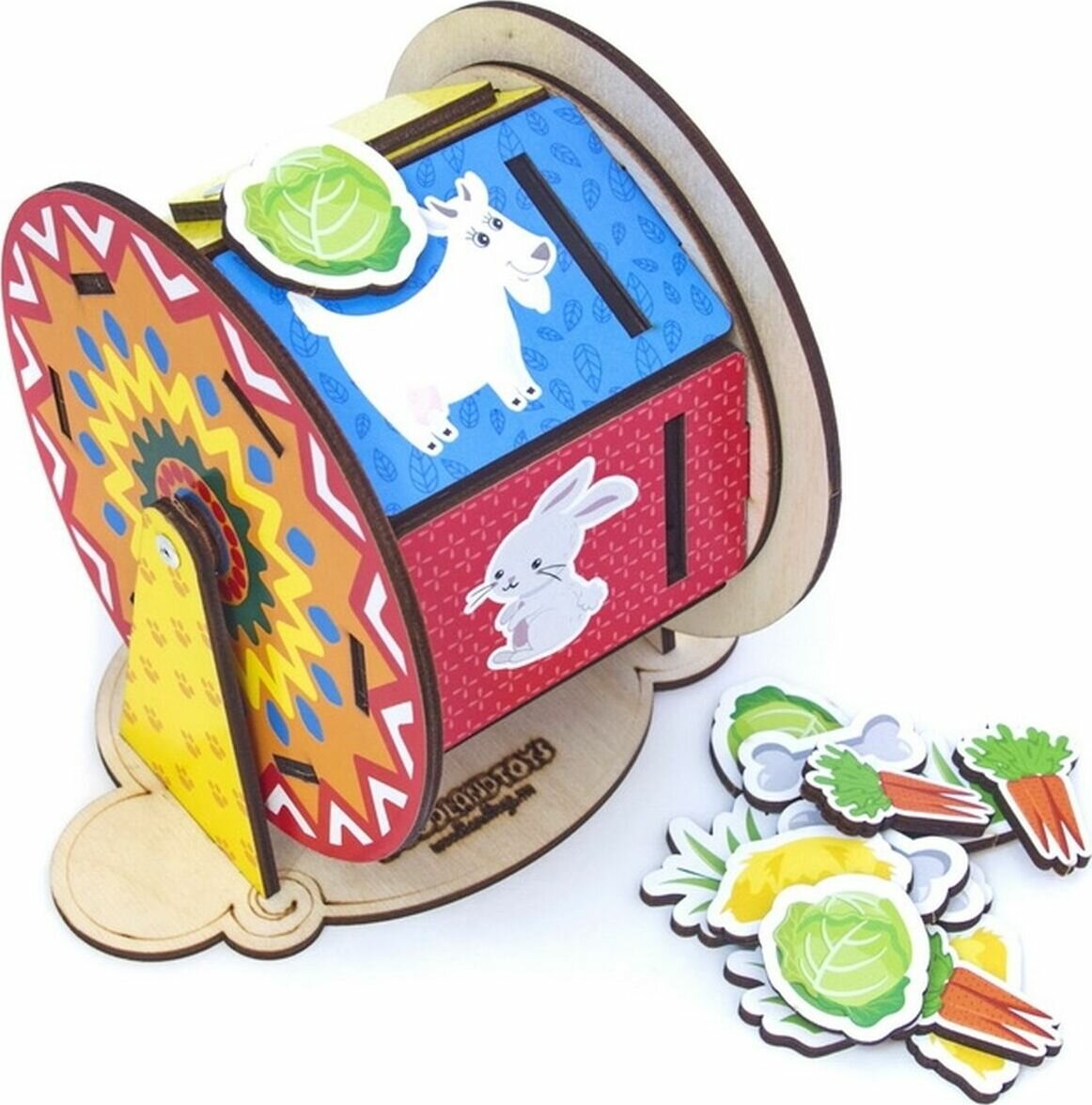 Купить Деревянный сортер Барабан "Ферма", развивающая логическая игрушка, учим животных, 15 фишек