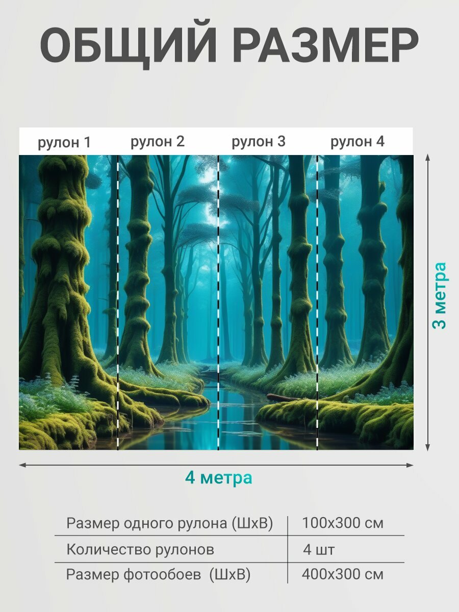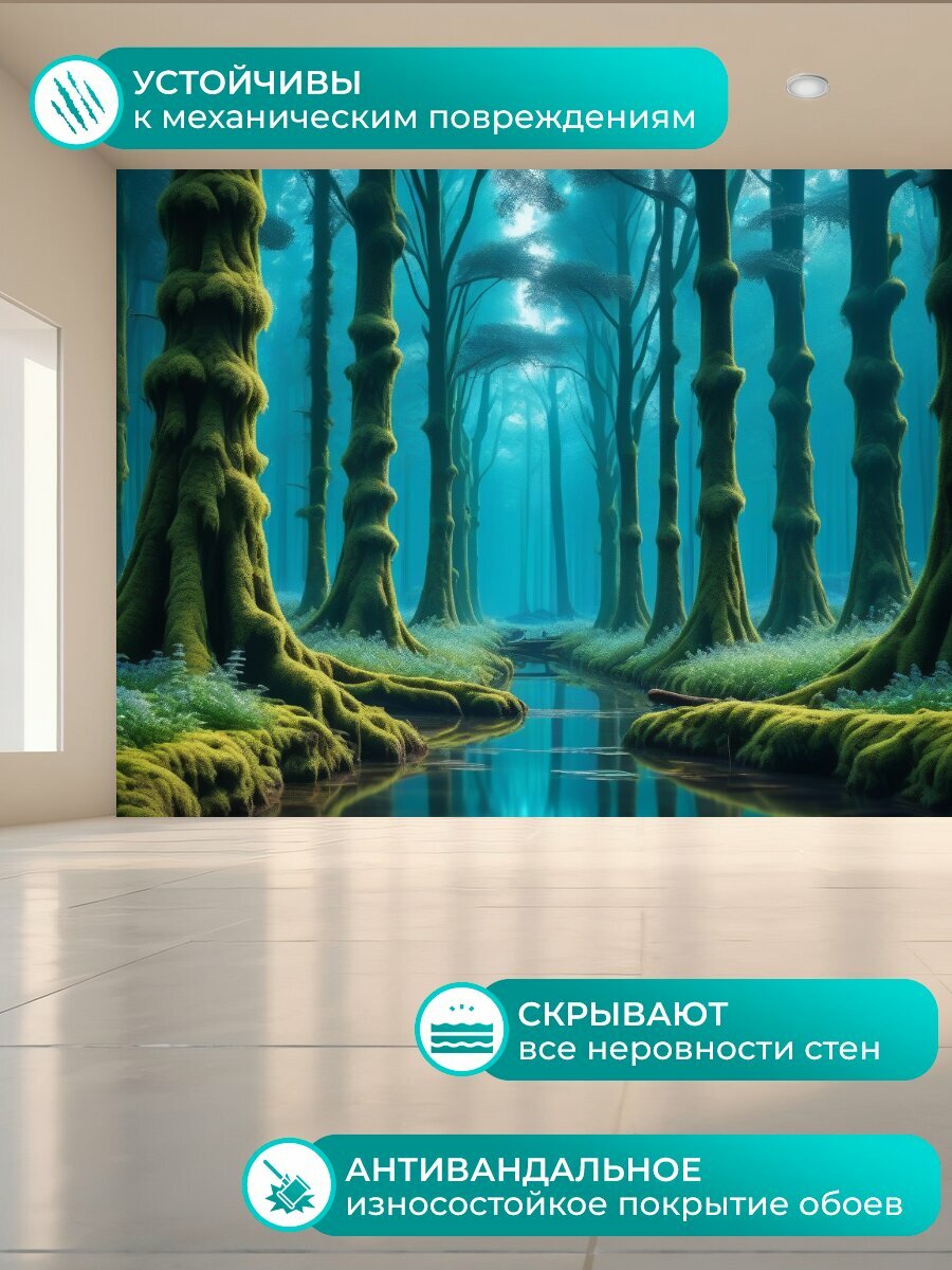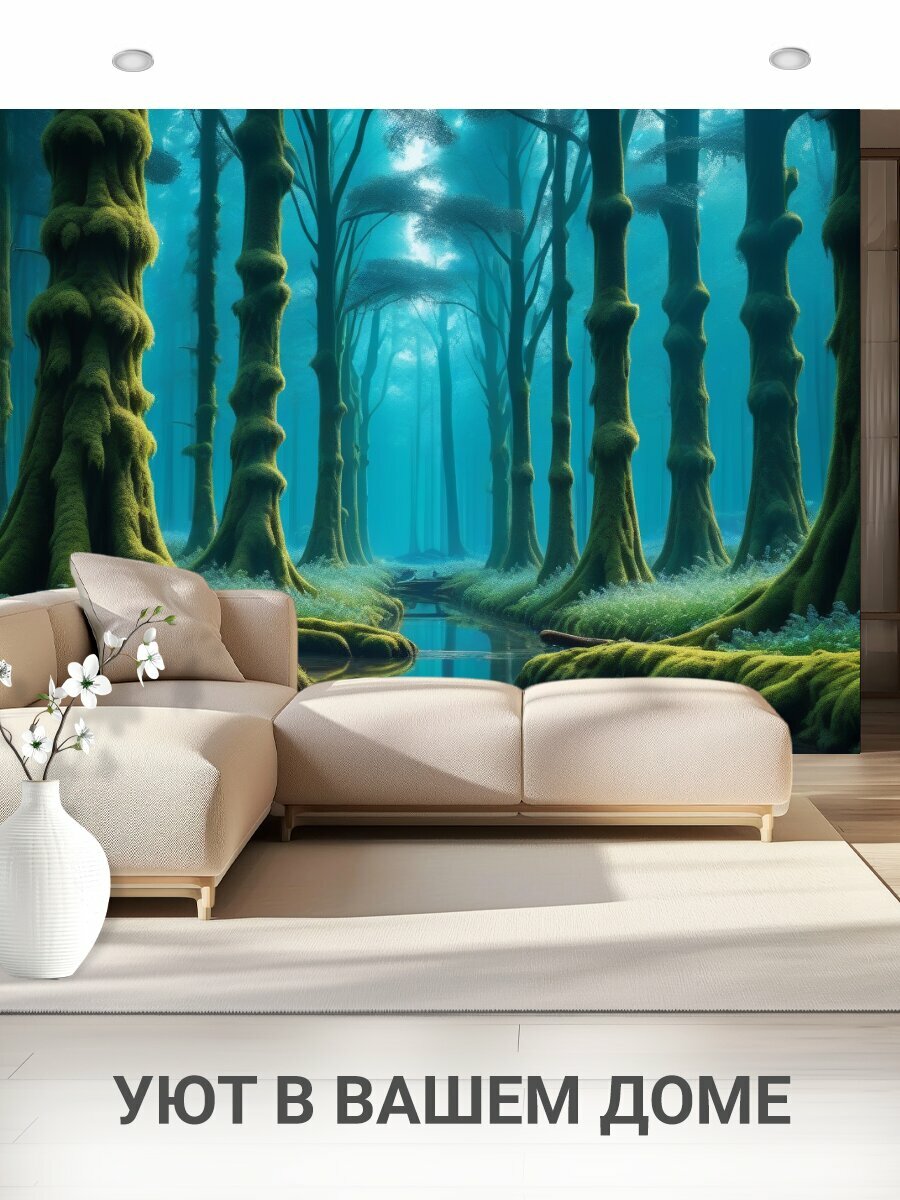 Фотообои моющиеся ударопрочные "Плавающие деревья и сказочный лес" 300x300 см. флизелиновые на стену