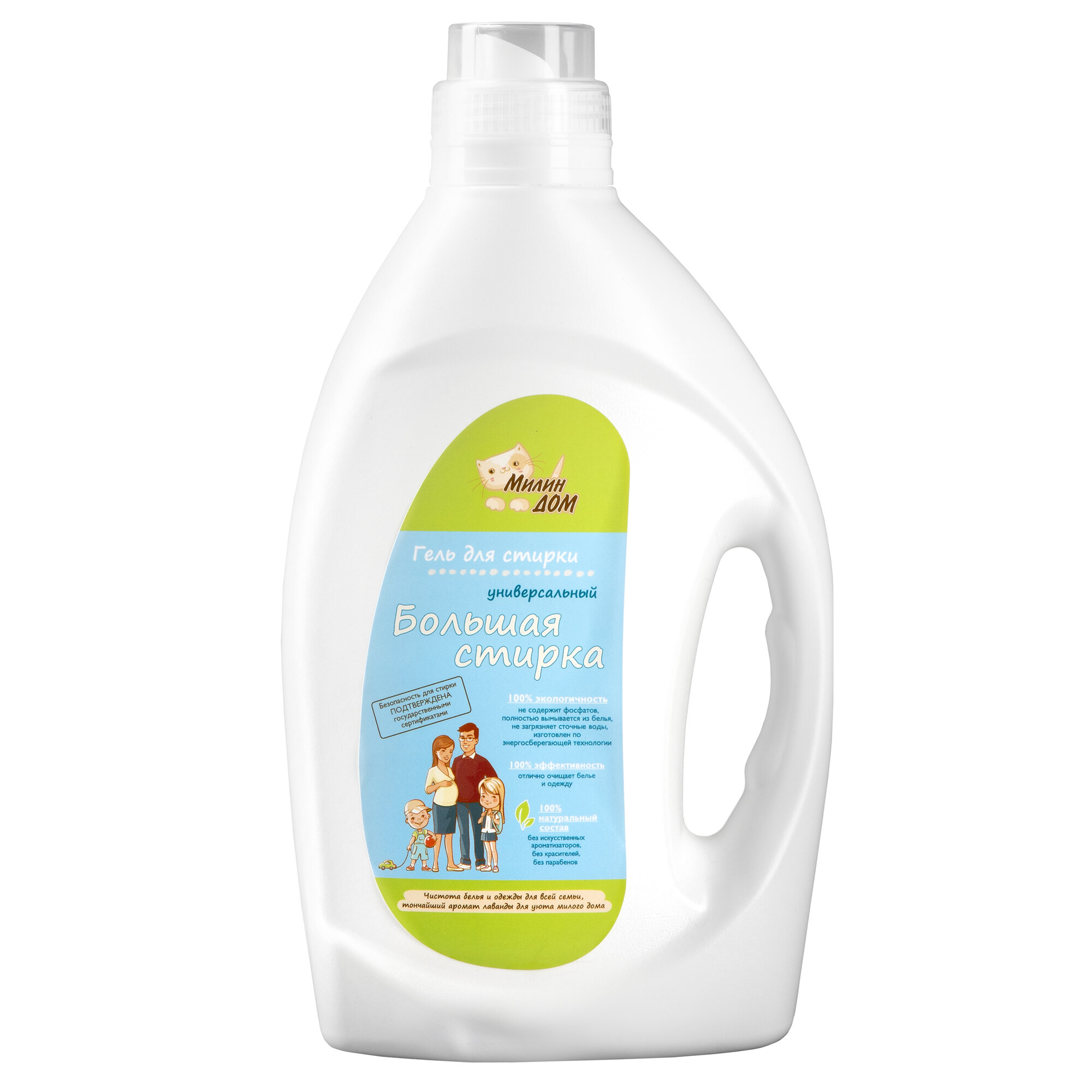 Гель для стирки детских вещей милин ДОМ "Мамины котята" с ароматом мяты, 2 литра