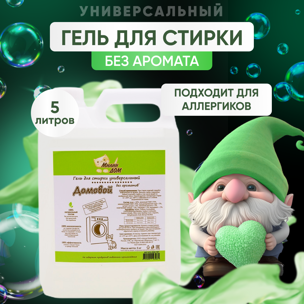 СохранитьГель для стирки Милин дом "Домовой" жидкий порошок для белья, гипоаллергенное средство 5 л интересное: