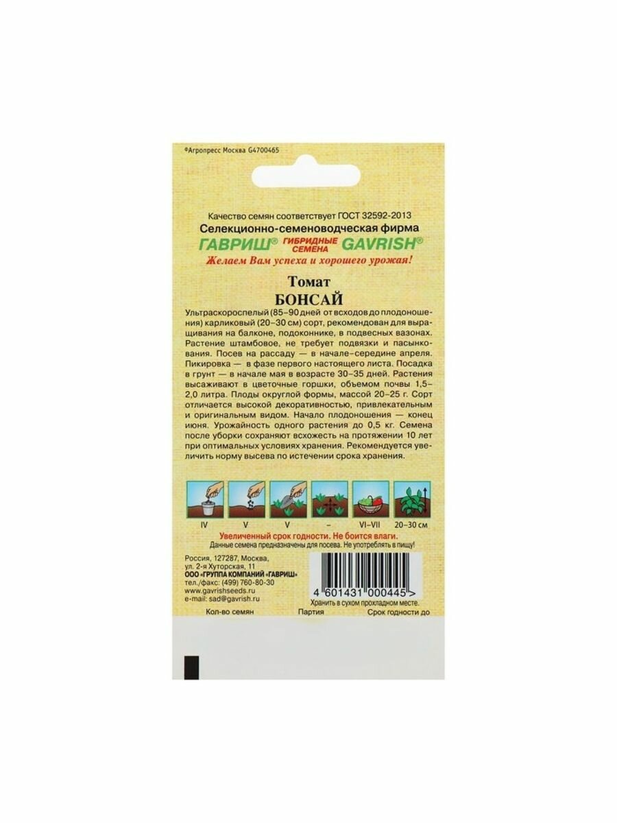 Семена Томат "Гавриш", "Бони ММ", суперранний, 0,05 г
