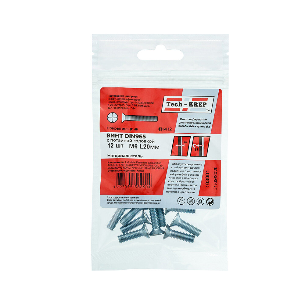 Ниже Вы можете прочитать отзывы на Tech-Krep Винт DIN965 с потайной головкой оцинк. М6x20 12 шт - пакет 103001, ознакомится с подробными характеристиками, посмотреть интересные обзоры и фотографии на Tech-Krep Винт DIN965 с потайной головкой оцинк. М6x20 12 шт - пакет 103001.
