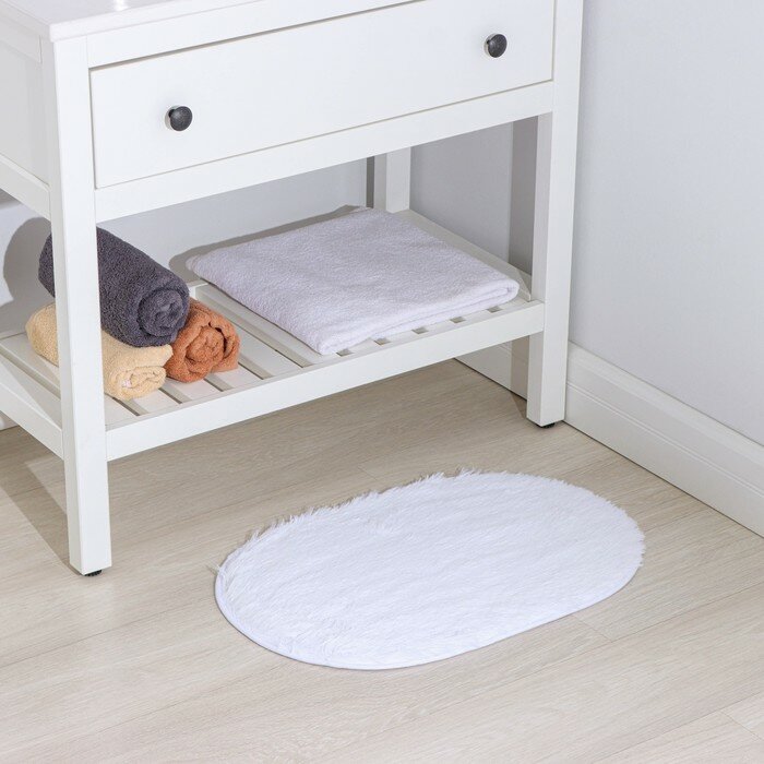 Купить Коврик для ванной и туалета Доляна Пушистик, 38 59 см, цвет белый