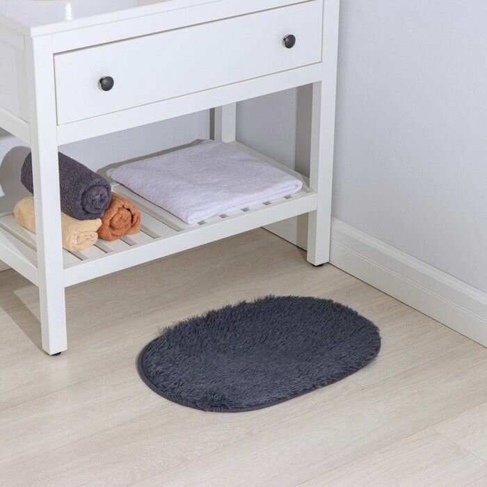 Коврик для ванной овальный Доляна "Пушистик", 40х60 см, цвет лазурный