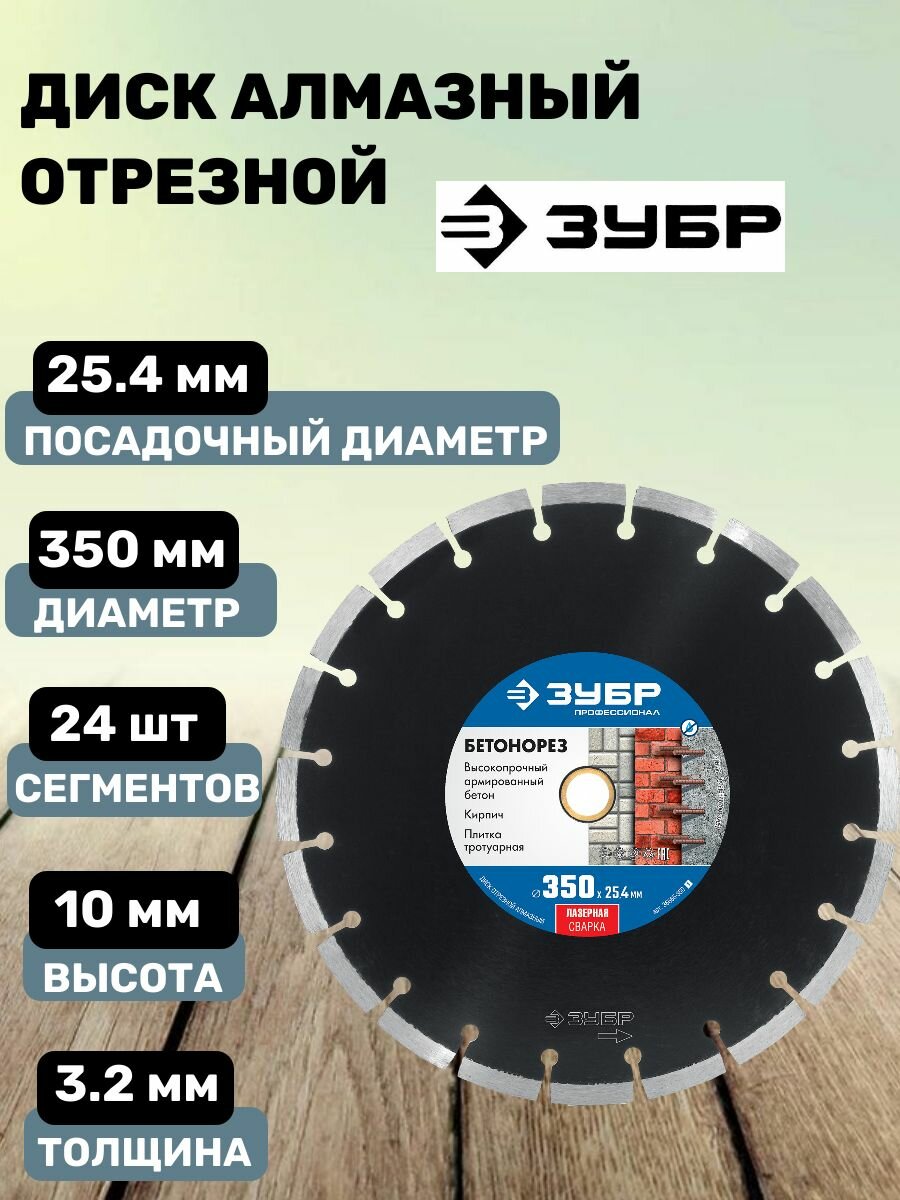 ЗУБР Бетонорез, 350 мм, (25.4/20 мм, 10 х 3.2 мм), сегментный алмазный диск, Профессионал (36665-350)