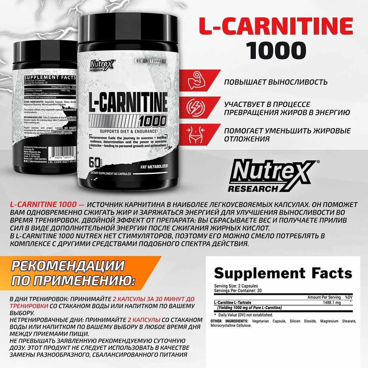 СохранитьL-Карнитин Nutrex Lipo-6 Carnitine 60 капс. ( капсулы массой 910 мг ) интересное: