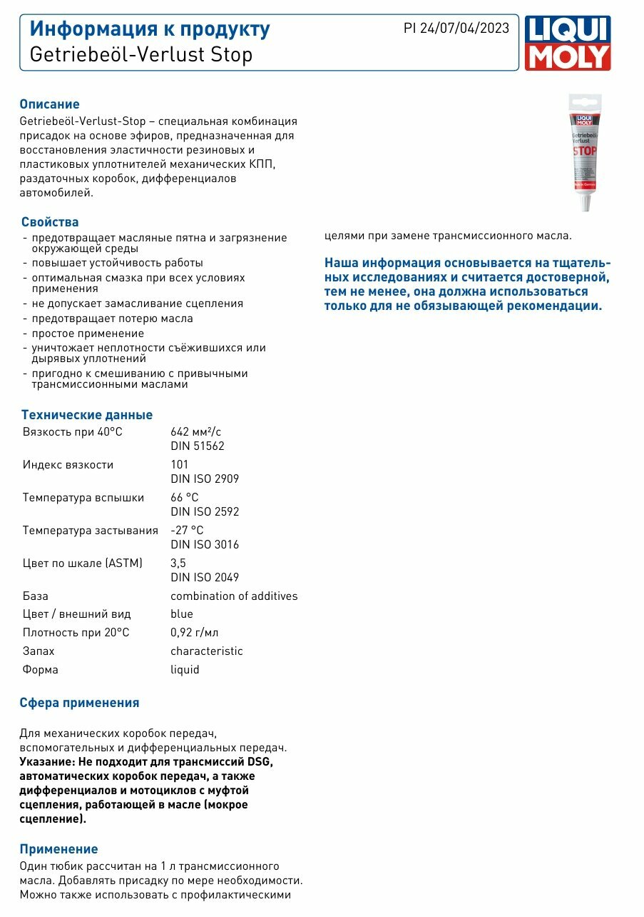 Getriebeoil Verlust Stop Средство Для Остановки Течи Транс.Масла 50мл. Liqui Moly 1042 В Подольске Liqui moly арт. 1042