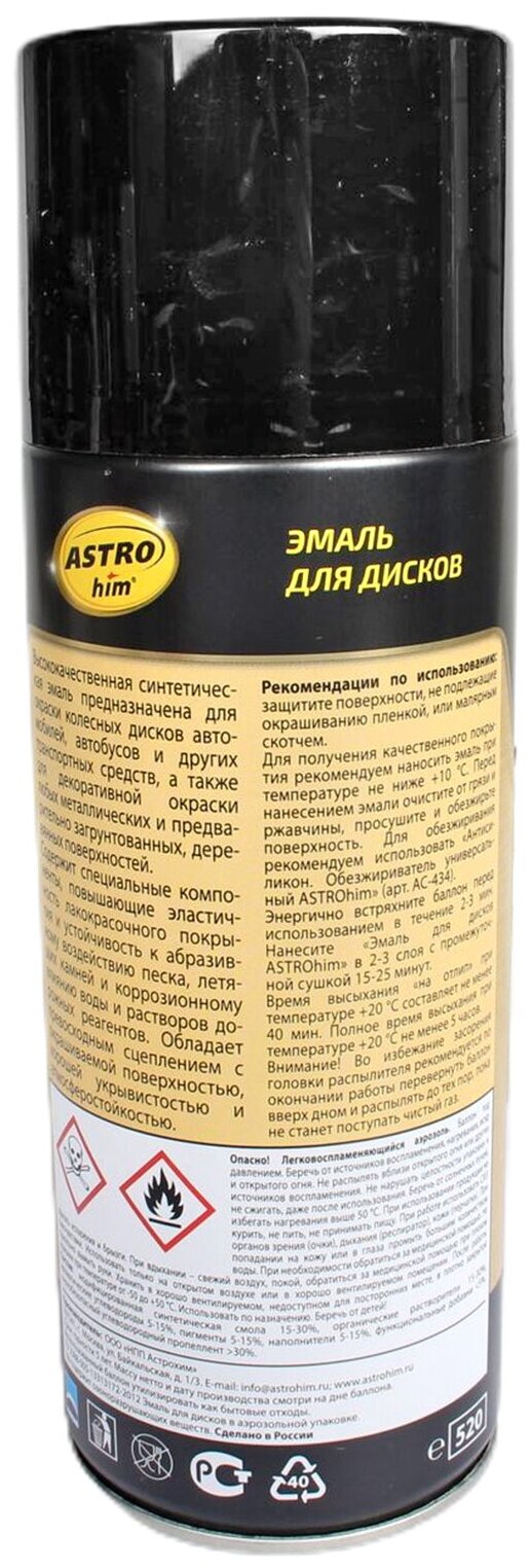 Эмаль для дисков Astrohim, черная, аэрозоль, 520 мл, АС - 602 .