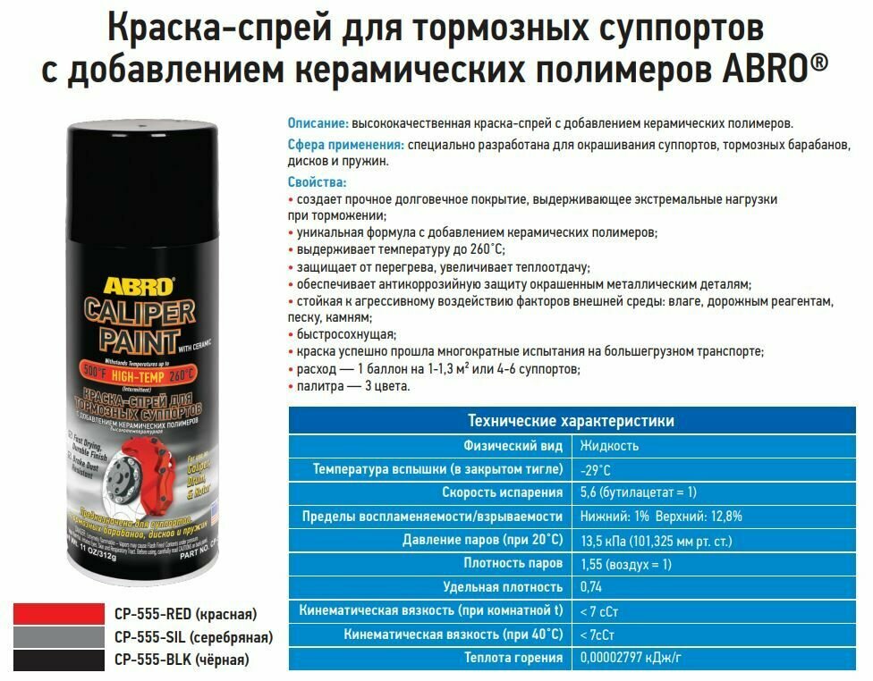 СохранитьABRO CP555RED краска-спрей для тормозных СУП интересное: