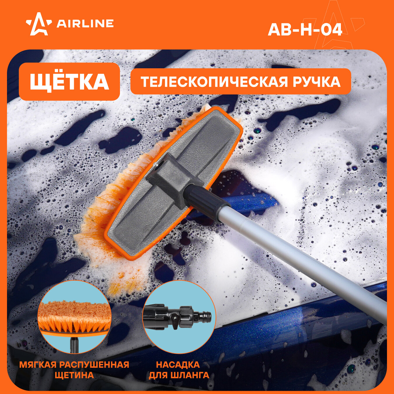 AIRLINE AB-H-04 Щетка для мытья а/м телескоп. (65х100 см) "AIRLINE" (с насадкой для шланга)