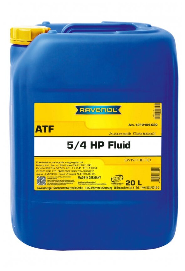RAVENOL 121210402001999 RAVENOL ATF 5/4 HP FLUID 20л 236.11, TL52162 LT 71141 (под заказ)