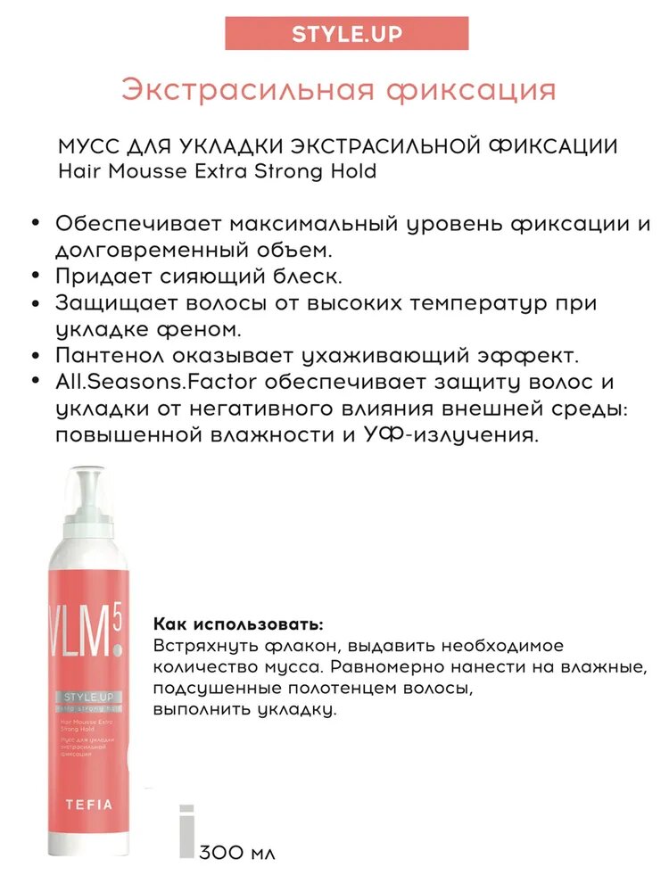 Мусс для укладки экстрасильной фиксации TEFIA STYLE.UP, 300 мл