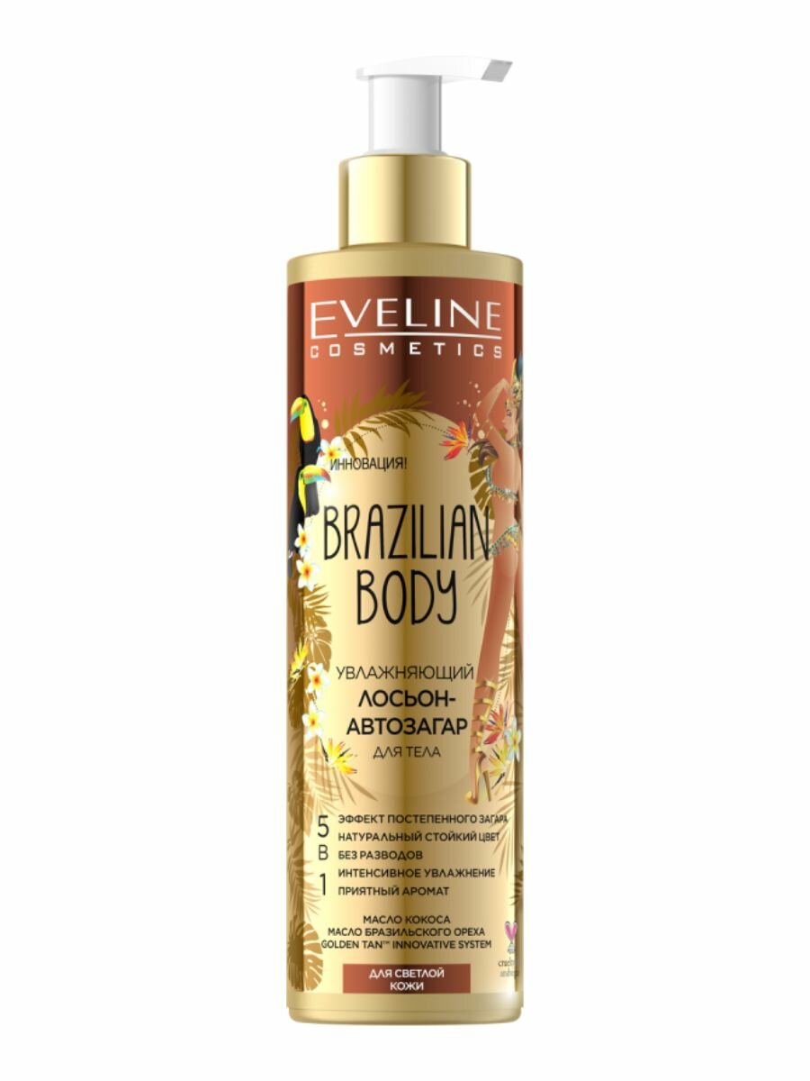 Увлажняющий лосьон-автозагар для тела Eveline Brazilian Body для светлой кожи 5в1, 200 мл