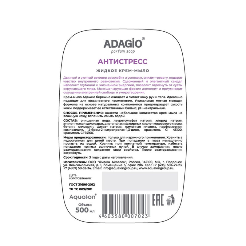 Купить Адажио. Крем-мыло перламутровое, 500 мл, Антистресс