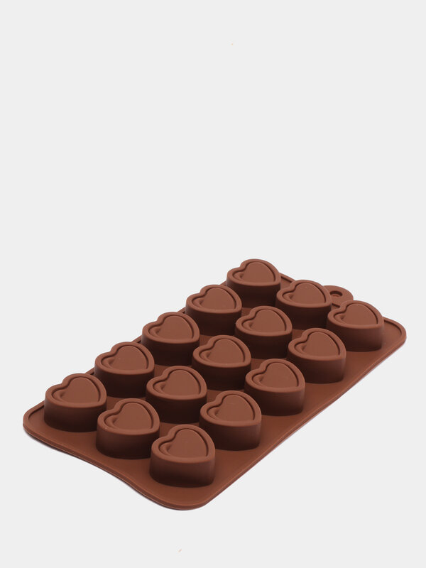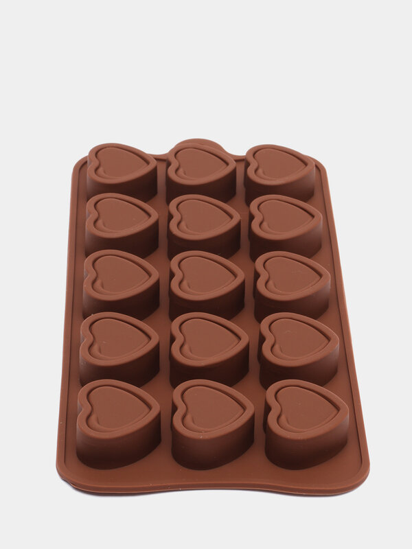 Доляна Форма для шоколада Доляна «Сердце», силикон, 21×10×1,5 см, 15 ячеек (2,9×2,7 см), цвет коричневый