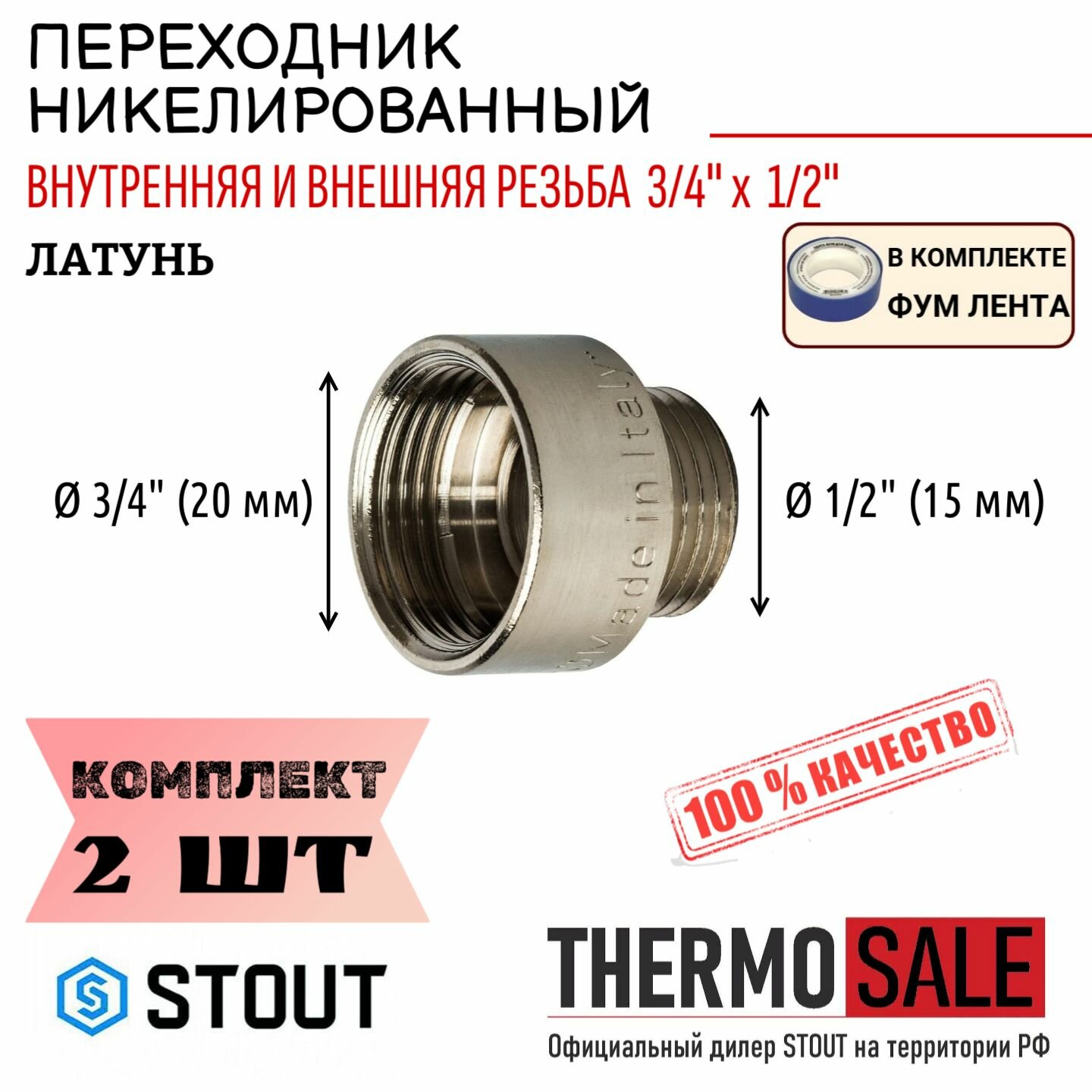 Купить Переходник 3/4 х 1/2 внутренняя резьба комплект 2 шт никелированный сантехнический STOUT