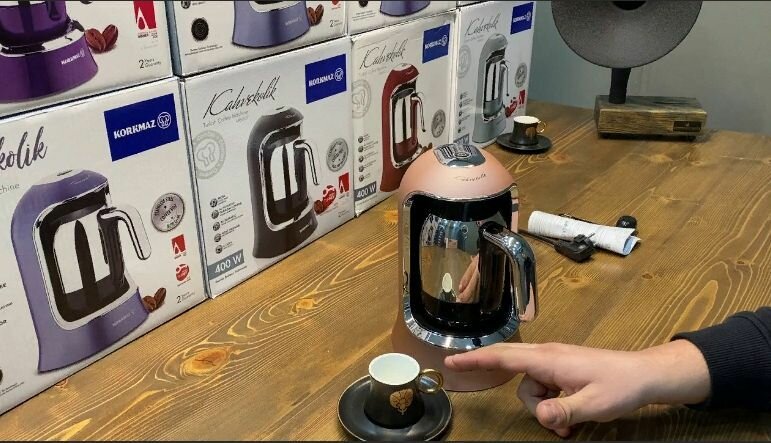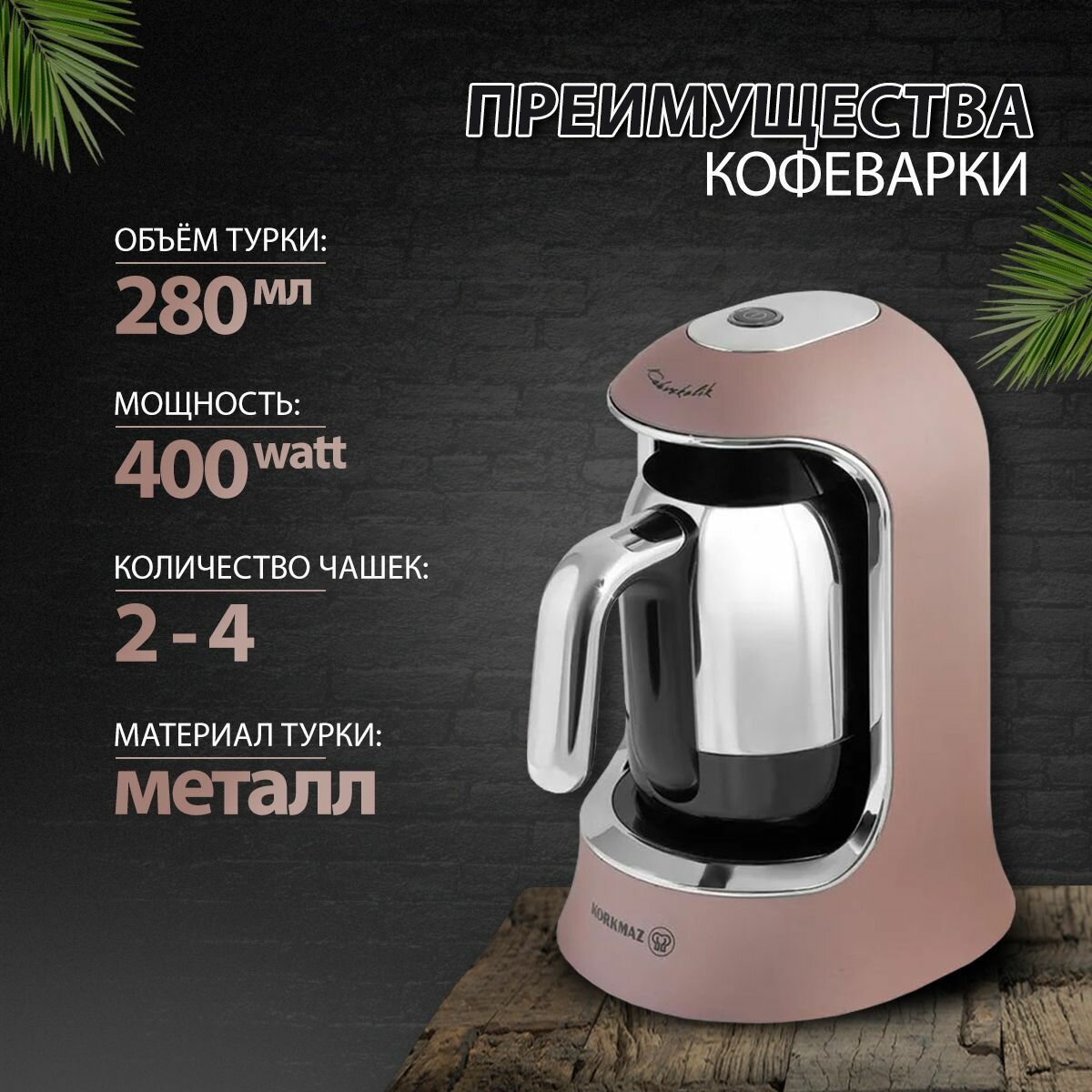 Кофеварка электрическая, кофемашина, турка для кофе, 280мл, Korkmaz Kahvekolik, 400W с автоотключением, розовое золото