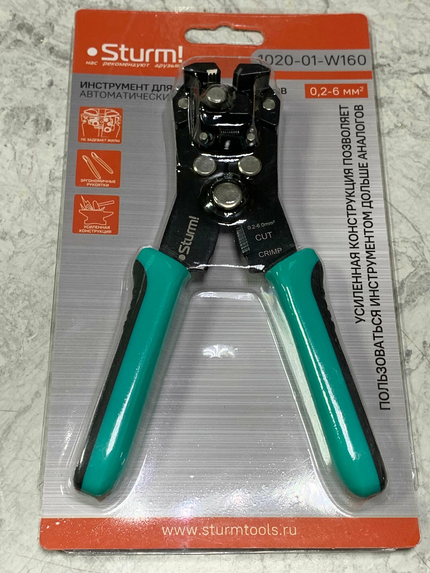 Щипцы-стриппер Sturm для зачистки электропроводов кримпер и кусачки 1020-01-W210