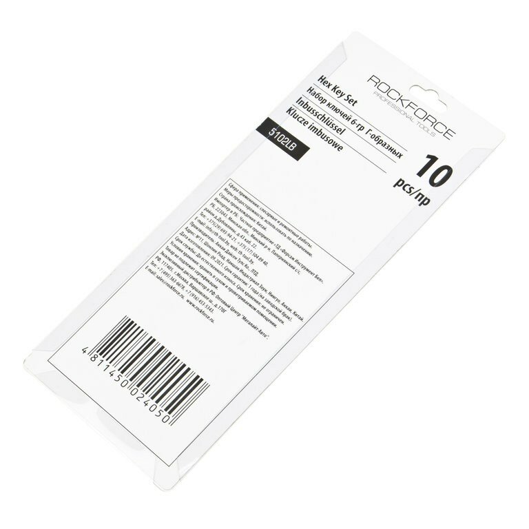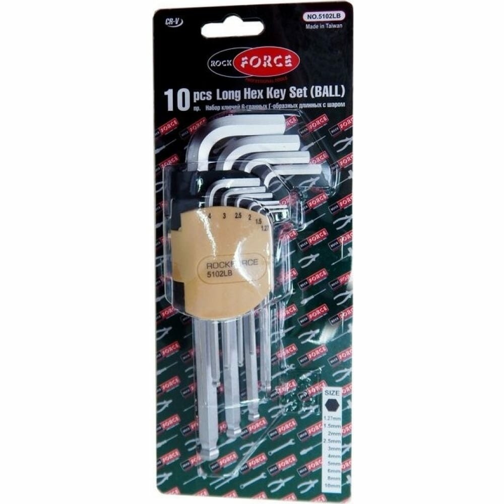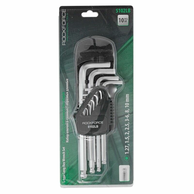 Набор ключей шестигранных 1.27-10мм удлиненных с шаром 10 предметов, ROCK FORCE RF5102LB (1 шт.)