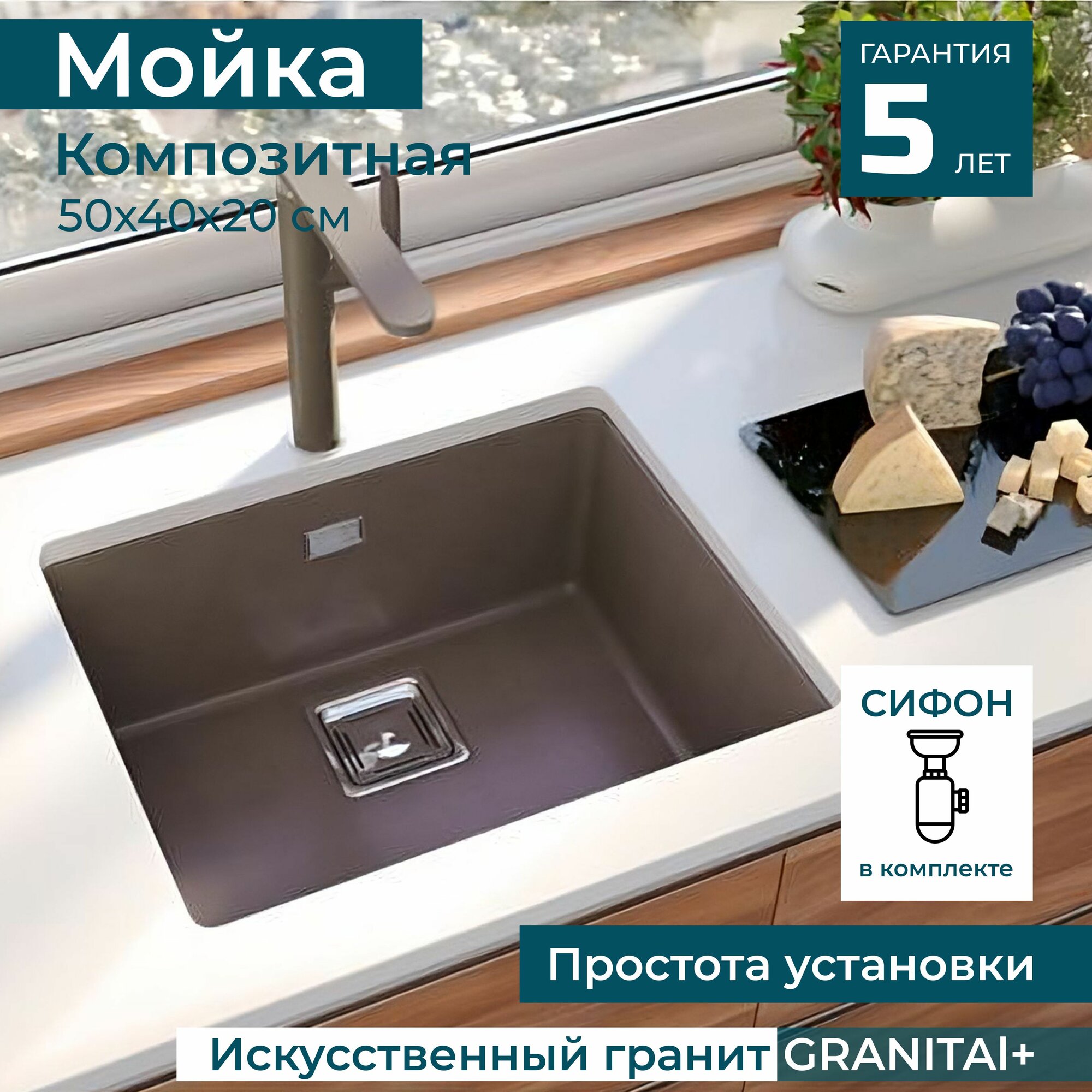 Кухонная мойка Alveus Granital+ Quadrix 50 Chocolate-G03M 560х460х200 с сифоном, коричневая (1108036)