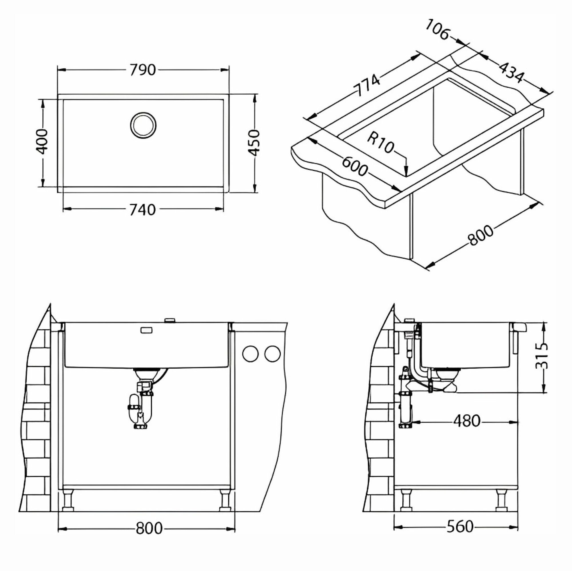 СохранитьМойка ALVEUS QUADRIX MONARCH 60 BRONZE 740x400x200 интересное:
