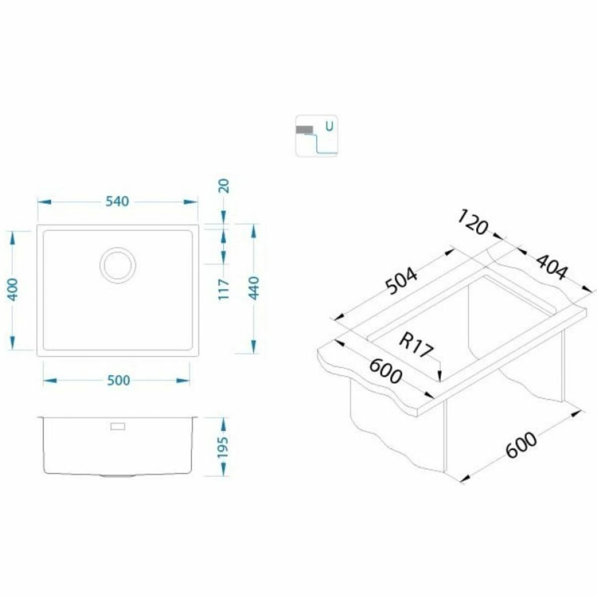 Мойка KOMBINO 50 Monarch Anthracite SAT-90 542X442X195 U