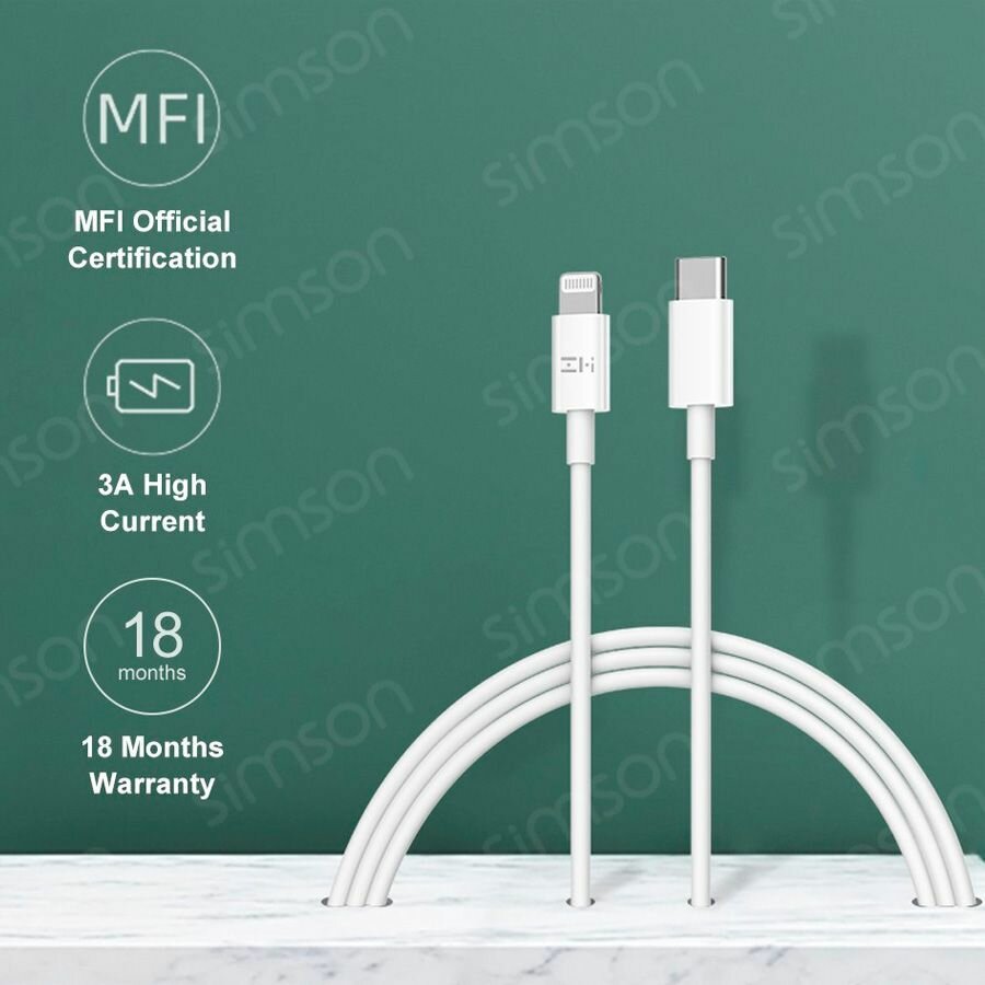 Кабель Zmi 100см MFI 3A 18W PD белый