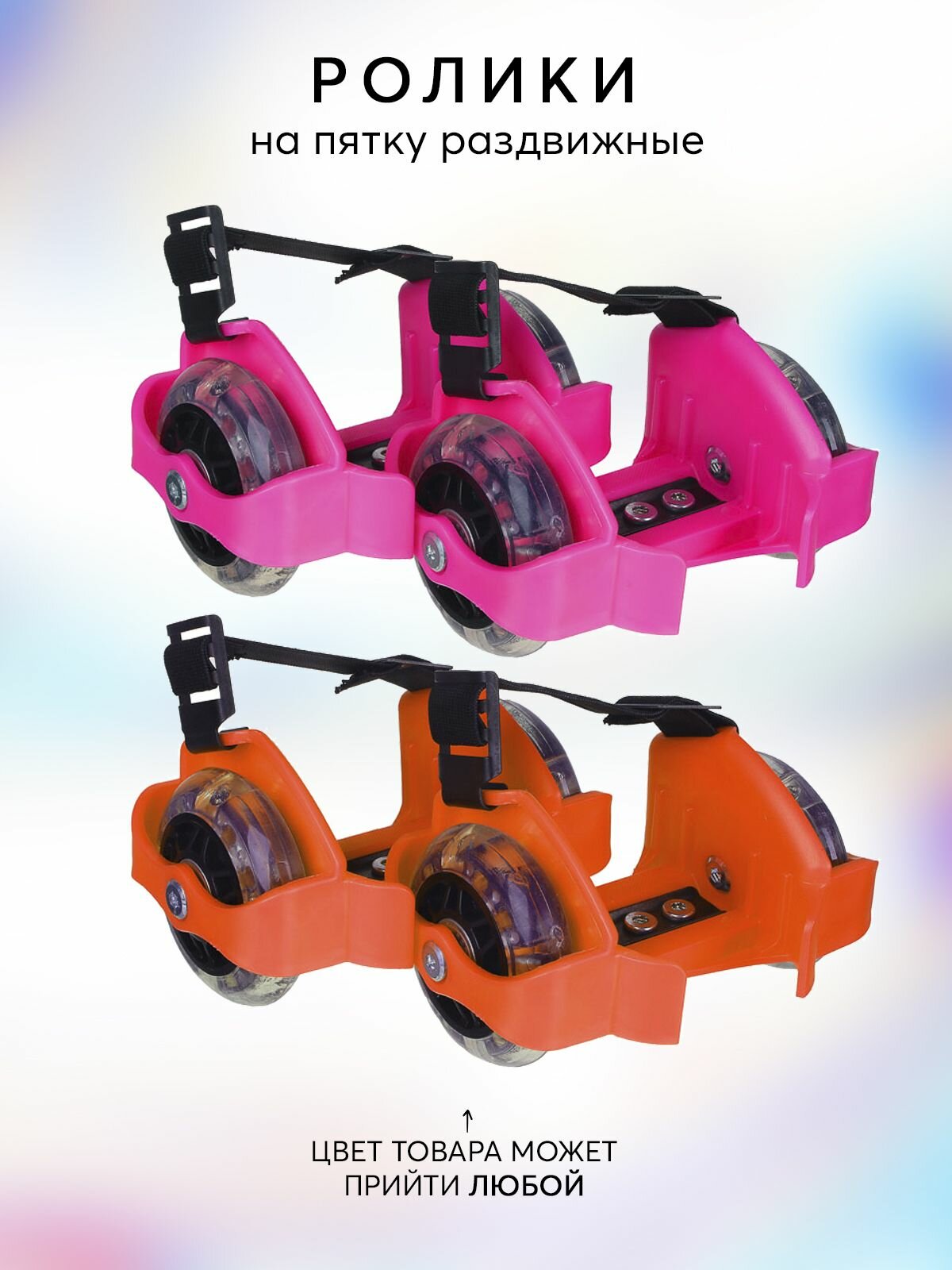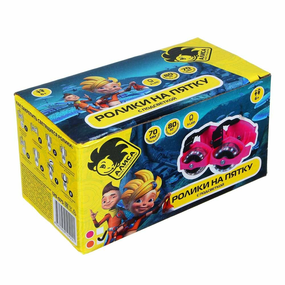 Алиса Ролики на пятку раздвижные, 2-х колесный LED ПВХ d=7cm, пластик, макс. вес 80кг, 2 цвета 129-075 (Ролики на пятку раздвижные)