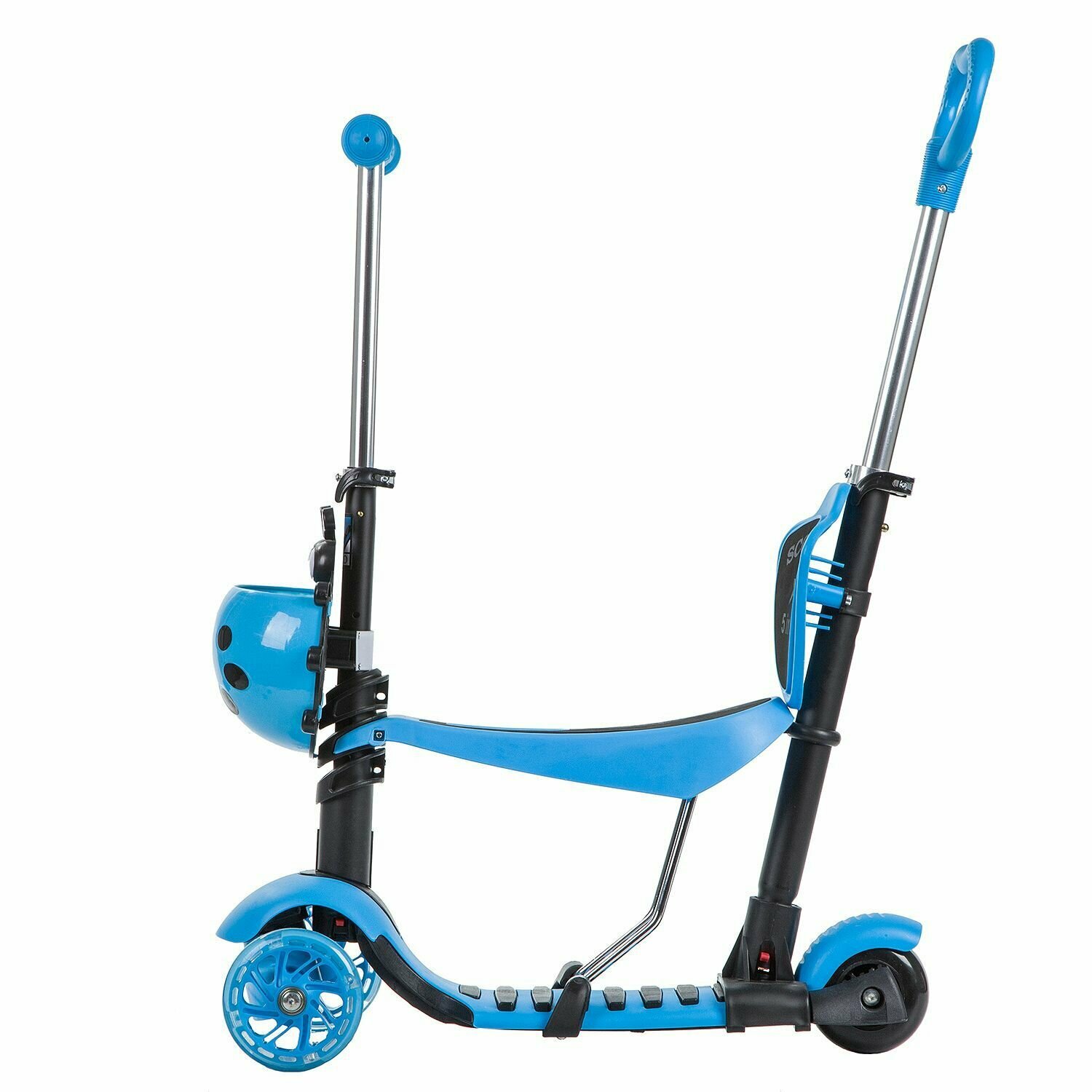 Самокат-кикборд Novatrack Disco-kids Saddle Pro, детский трансформер, голубой, 2021
