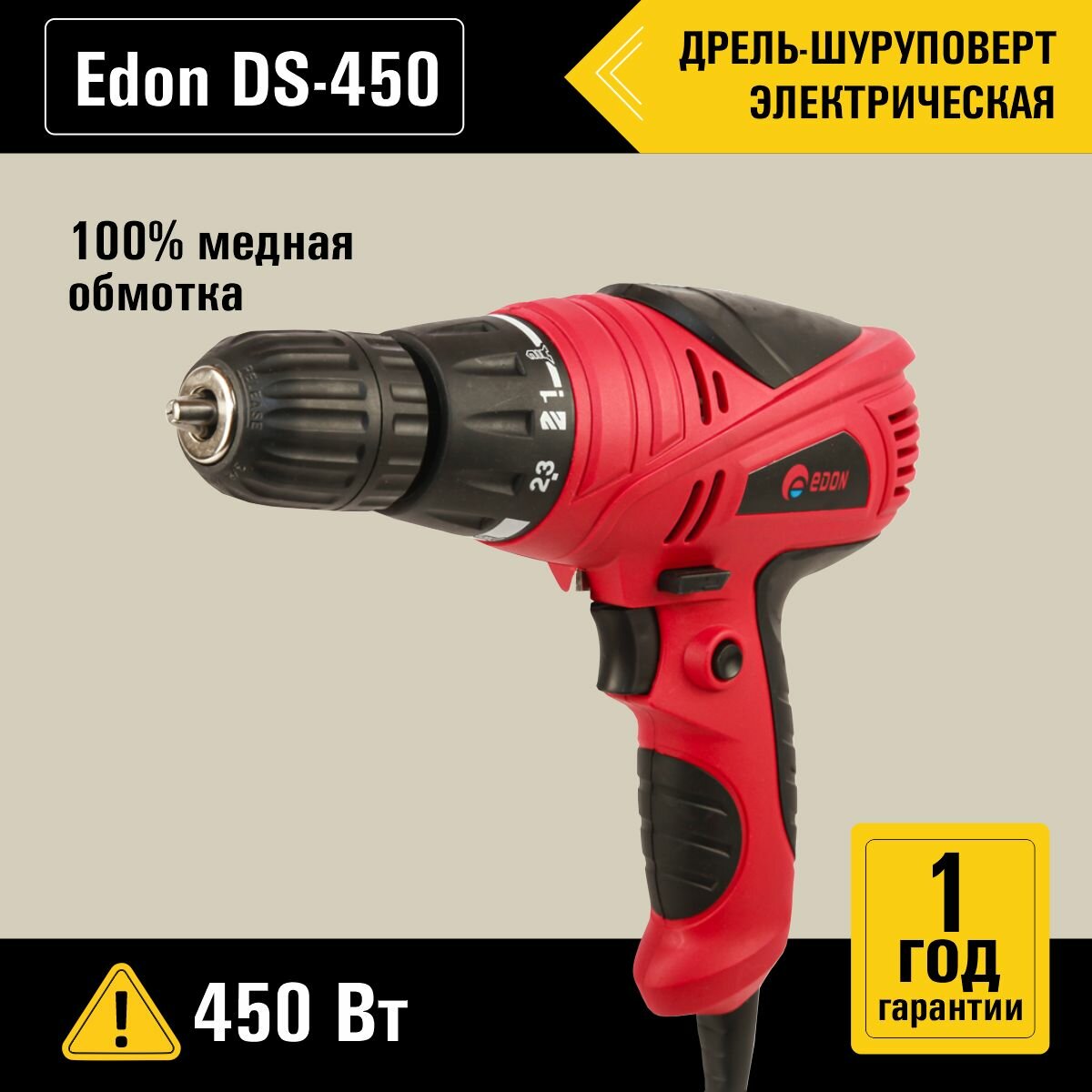 EDON Дрель-шуруповёрт электрическая DS-450 19526 интересное: