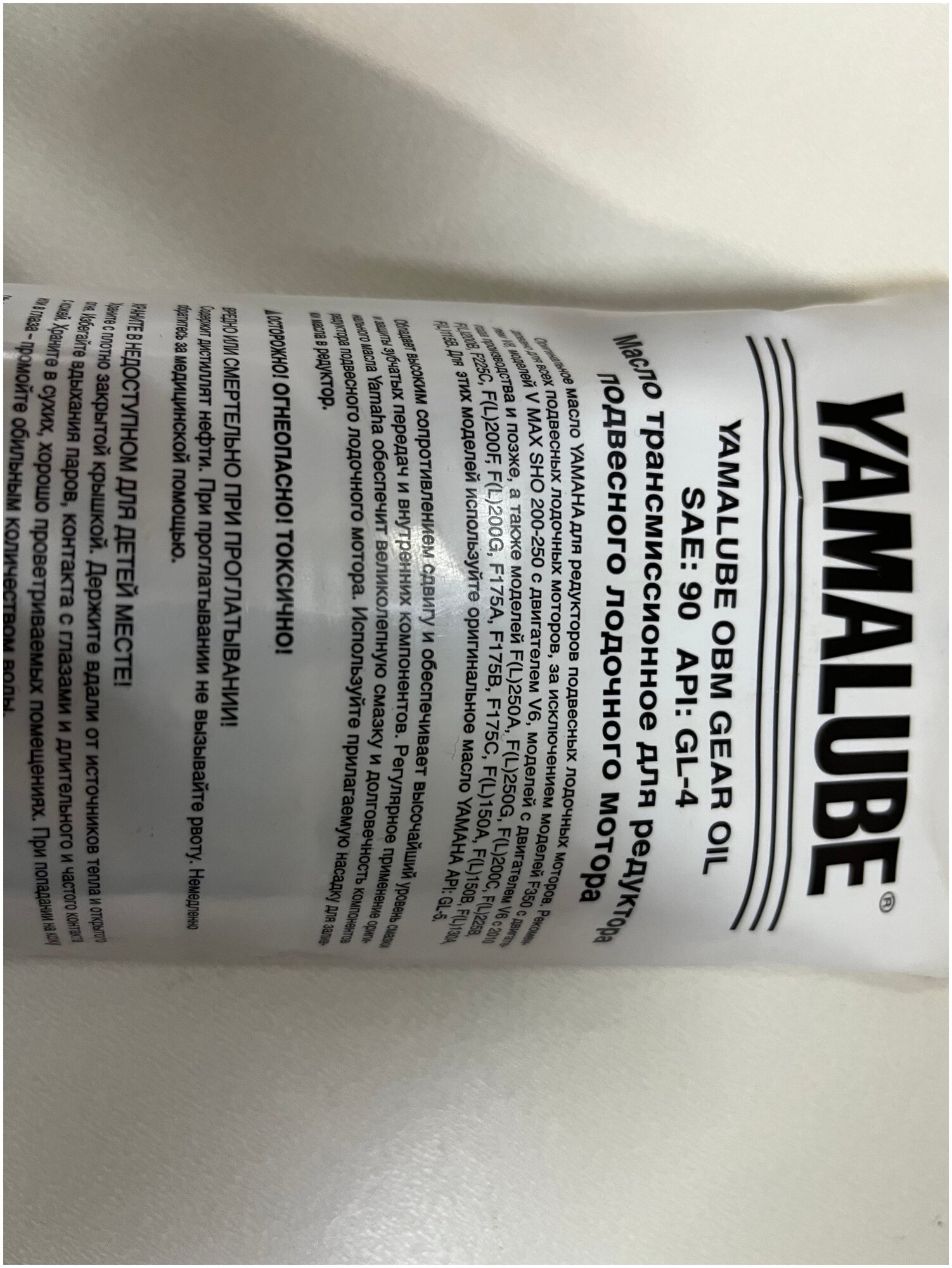 Трансмиссионное масло YAMALUBE Outboard Gear Oil GL-4 SAE 90, 750мл