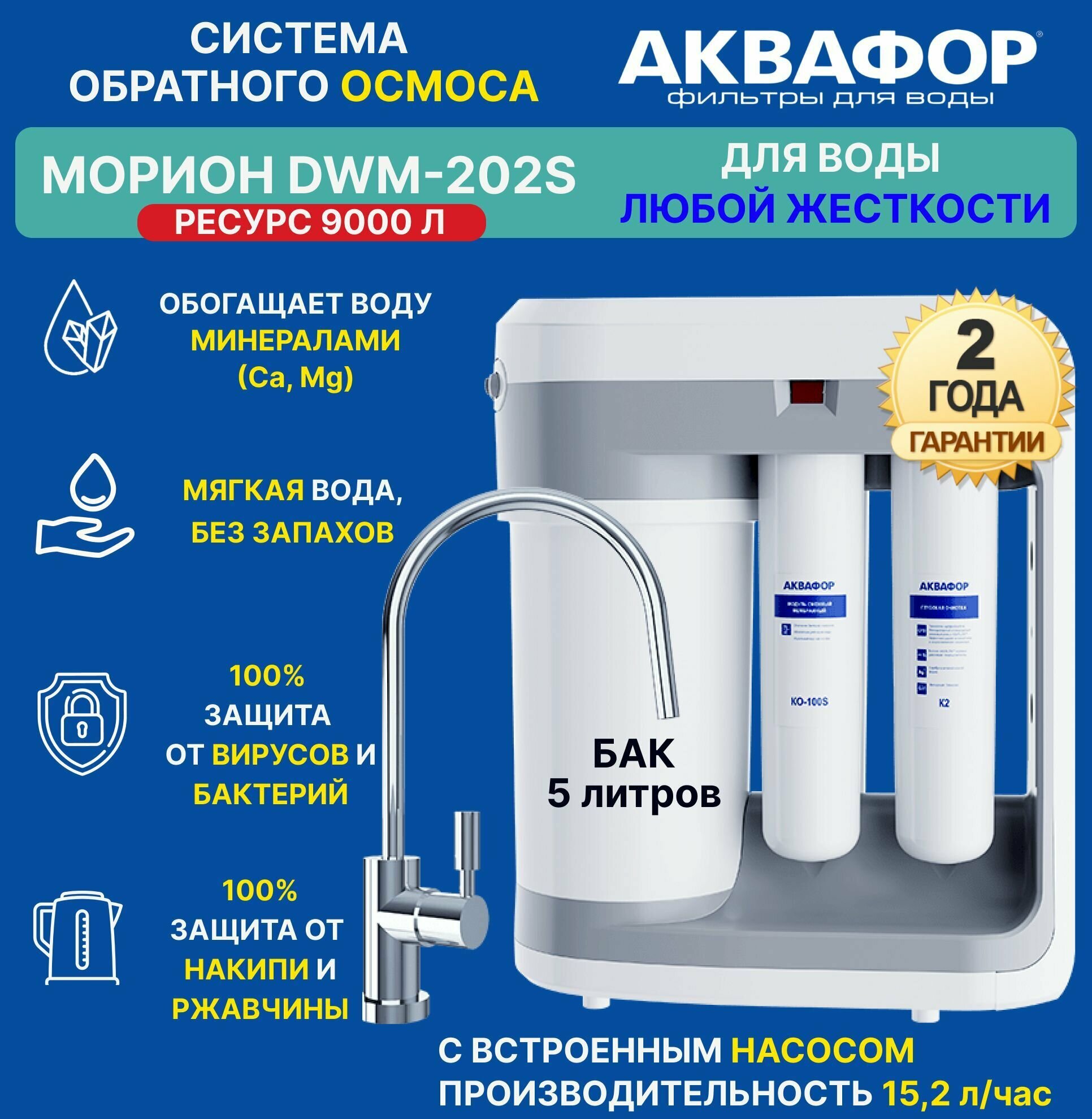 Фильтр для воды под мойку Аквафор DWM-202S, обратный осмос с минерализатором